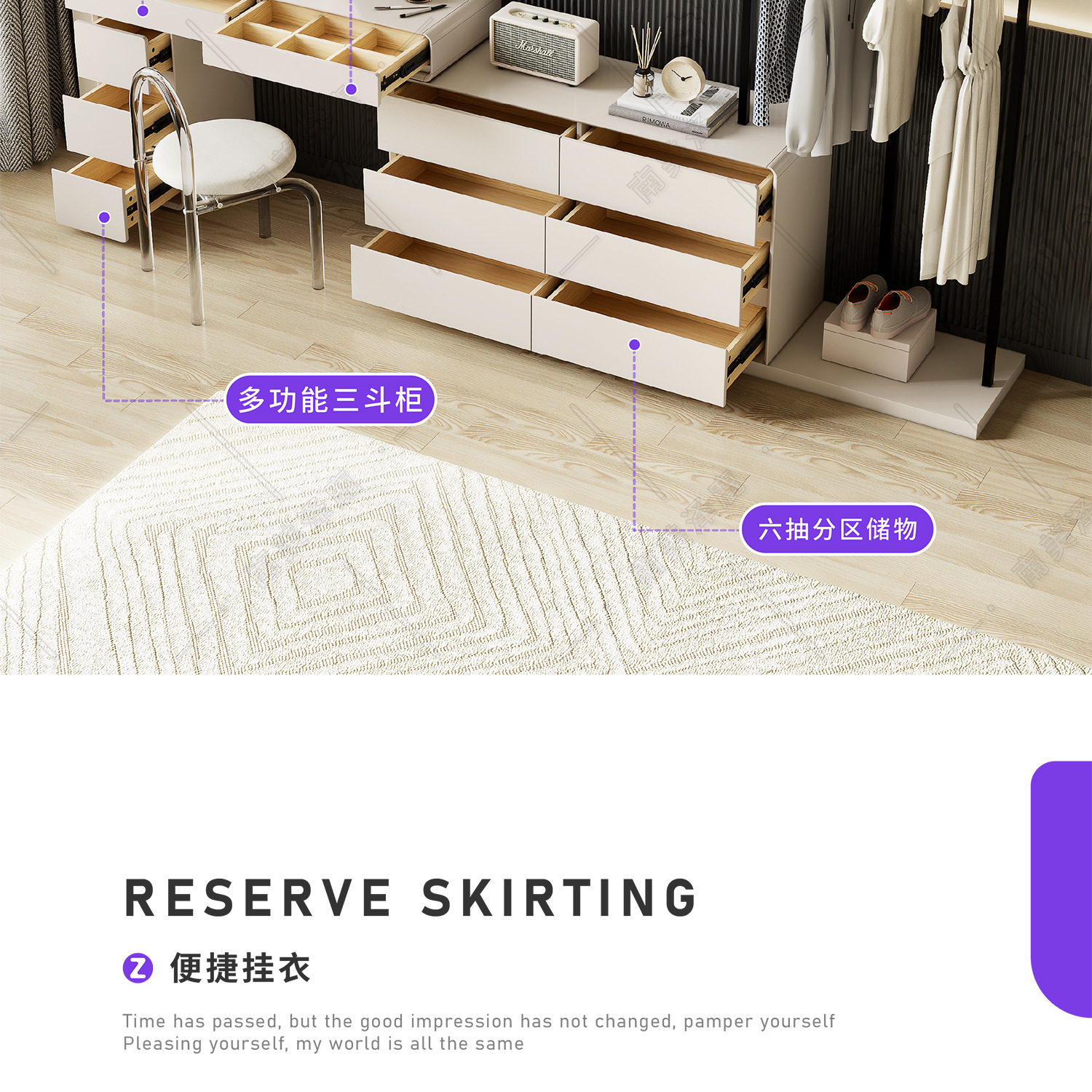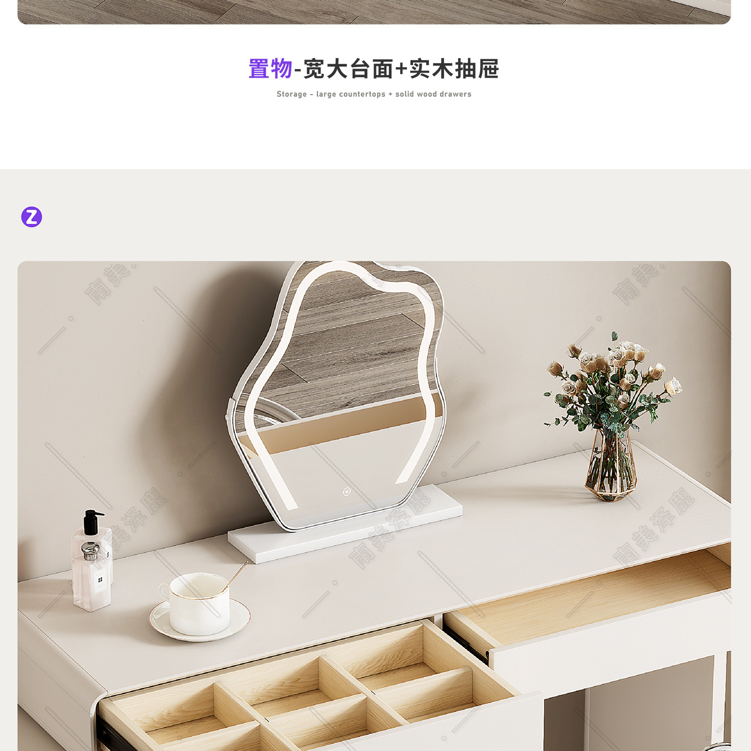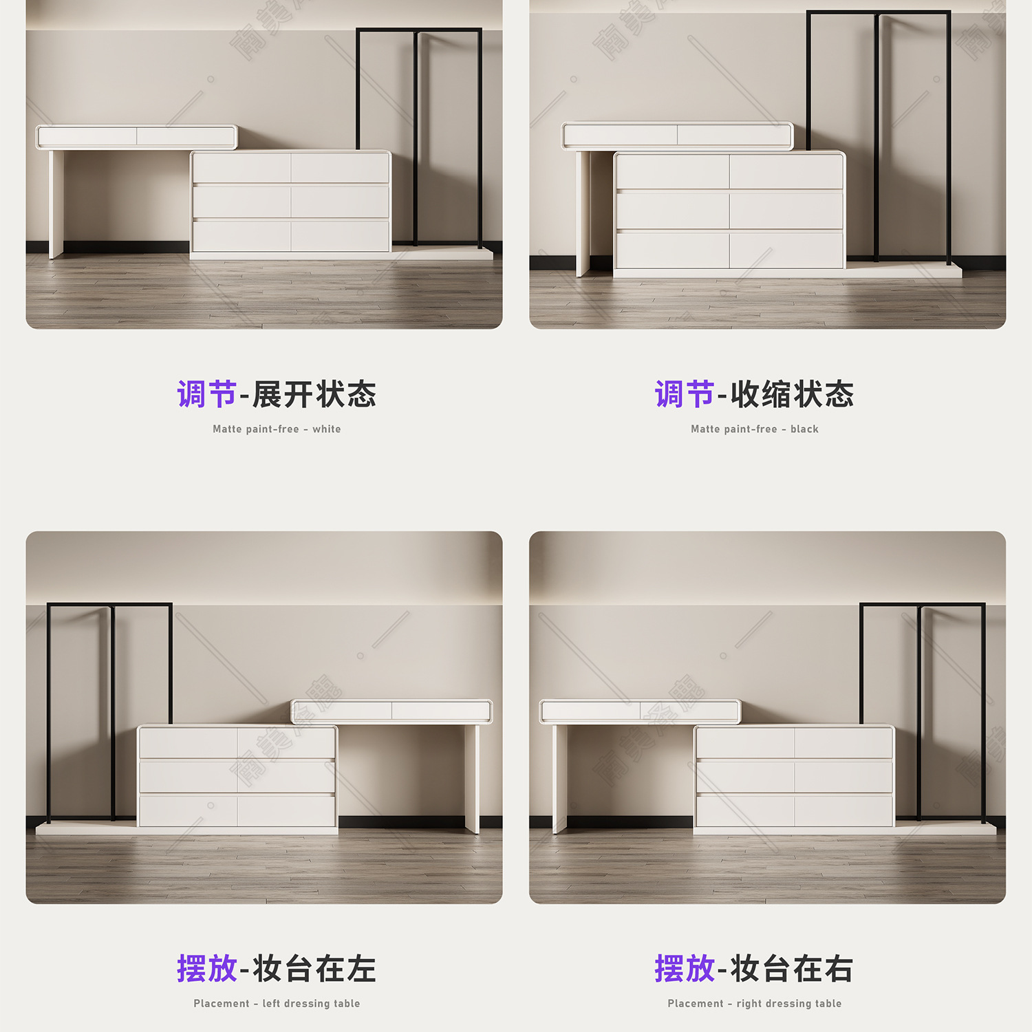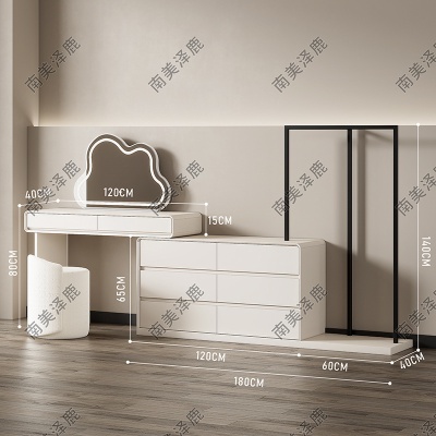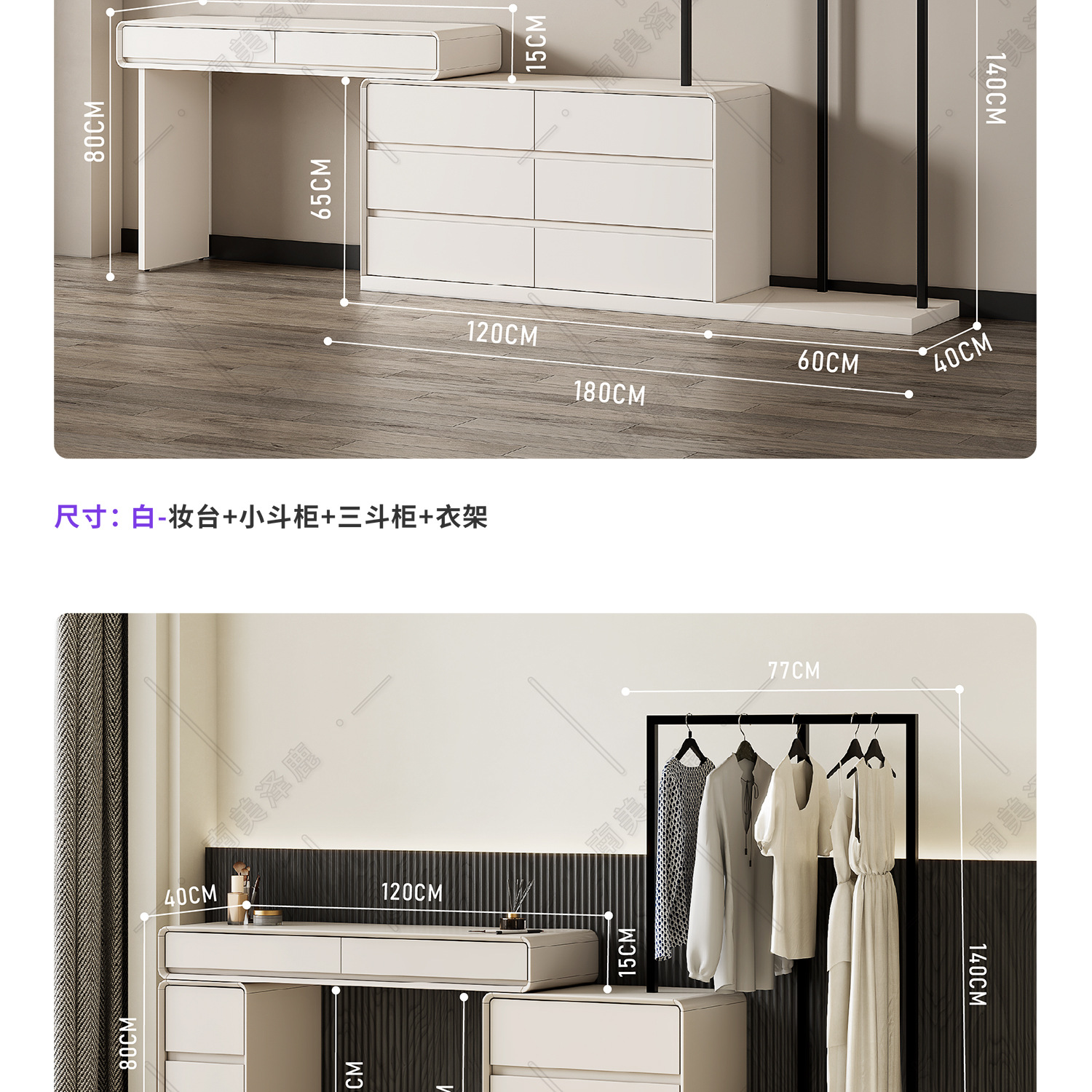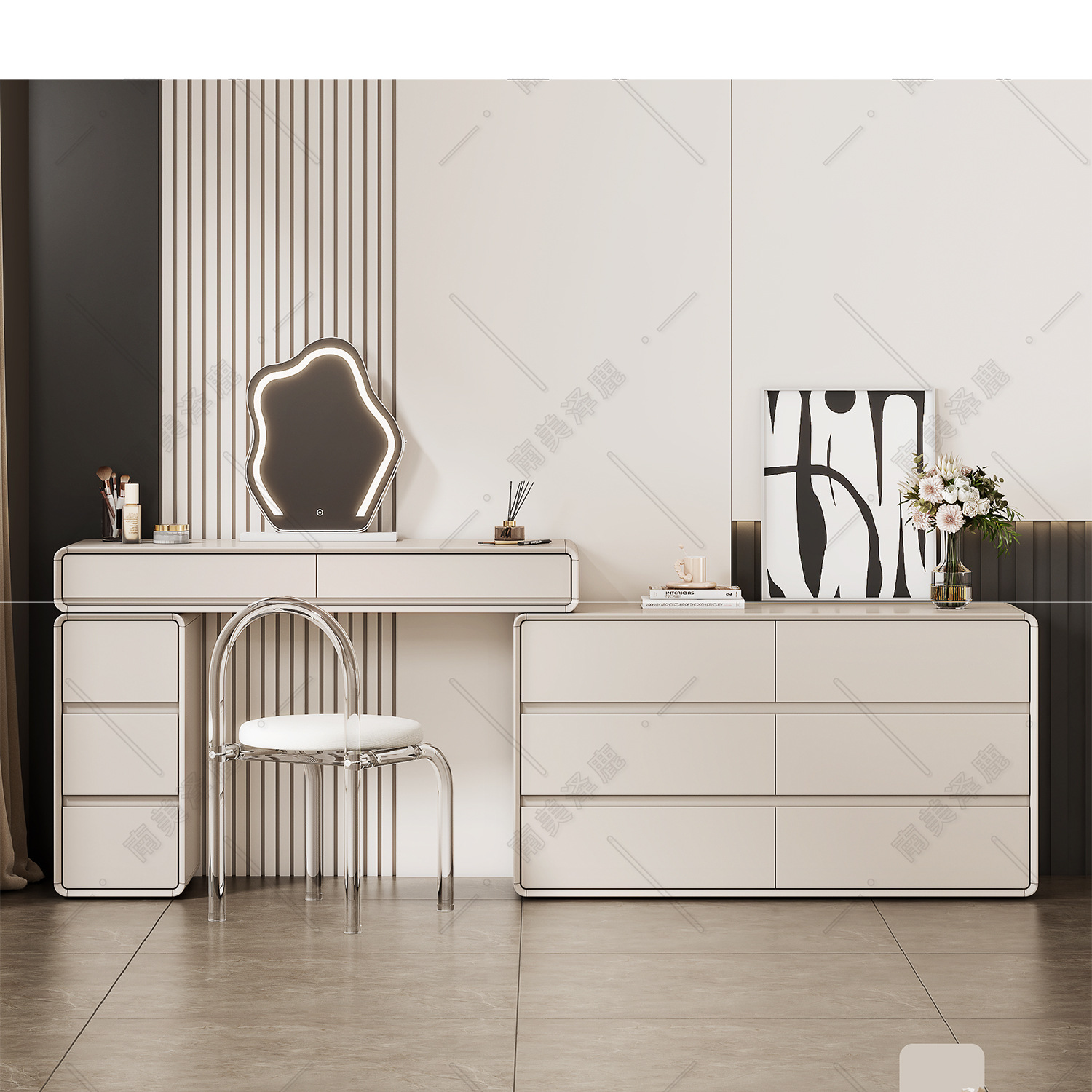 商品名稱:实木梳妆台斗柜一体意式轻奢主卧可伸缩现代极简感简约床尾柜