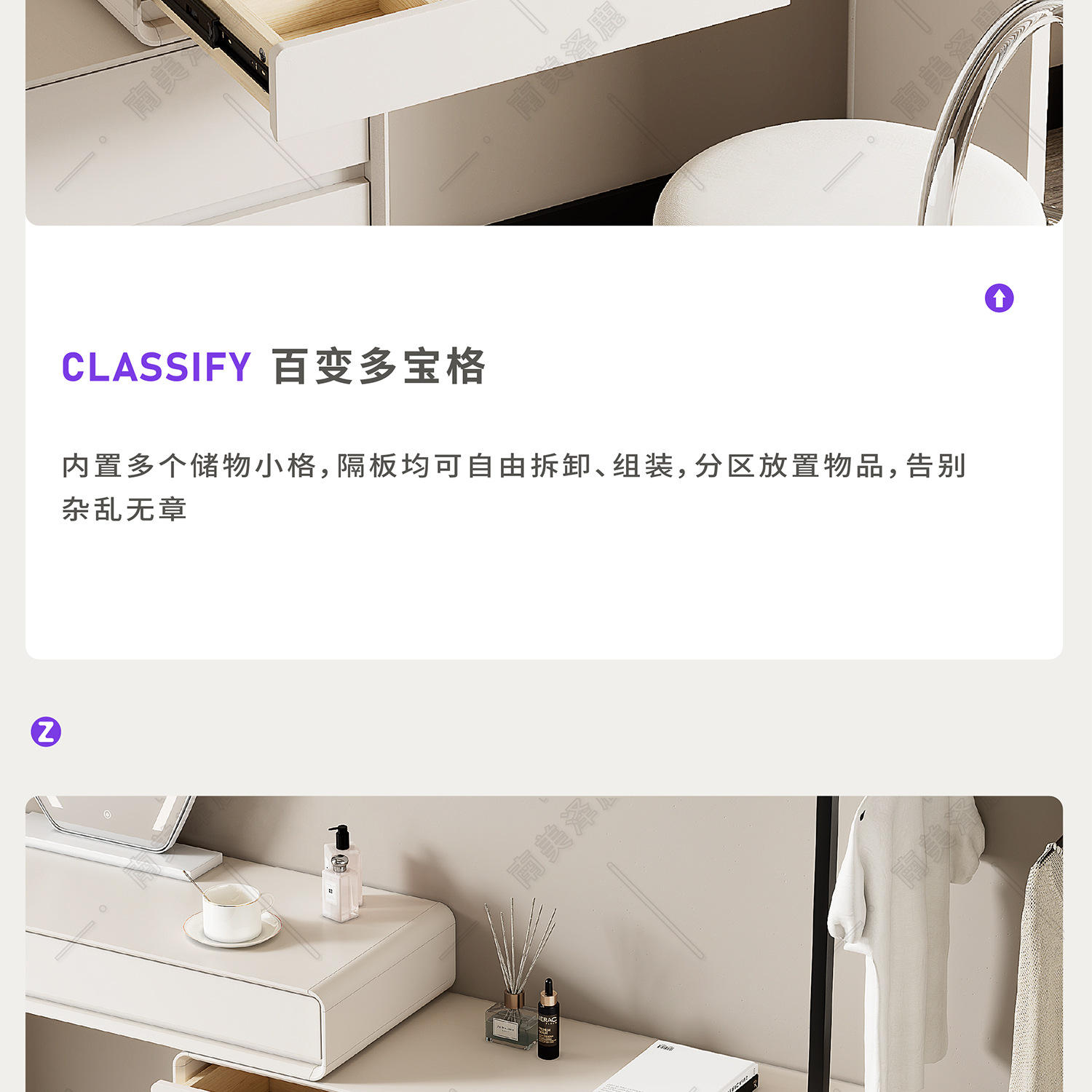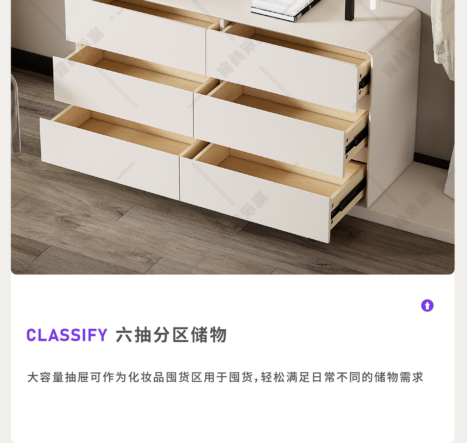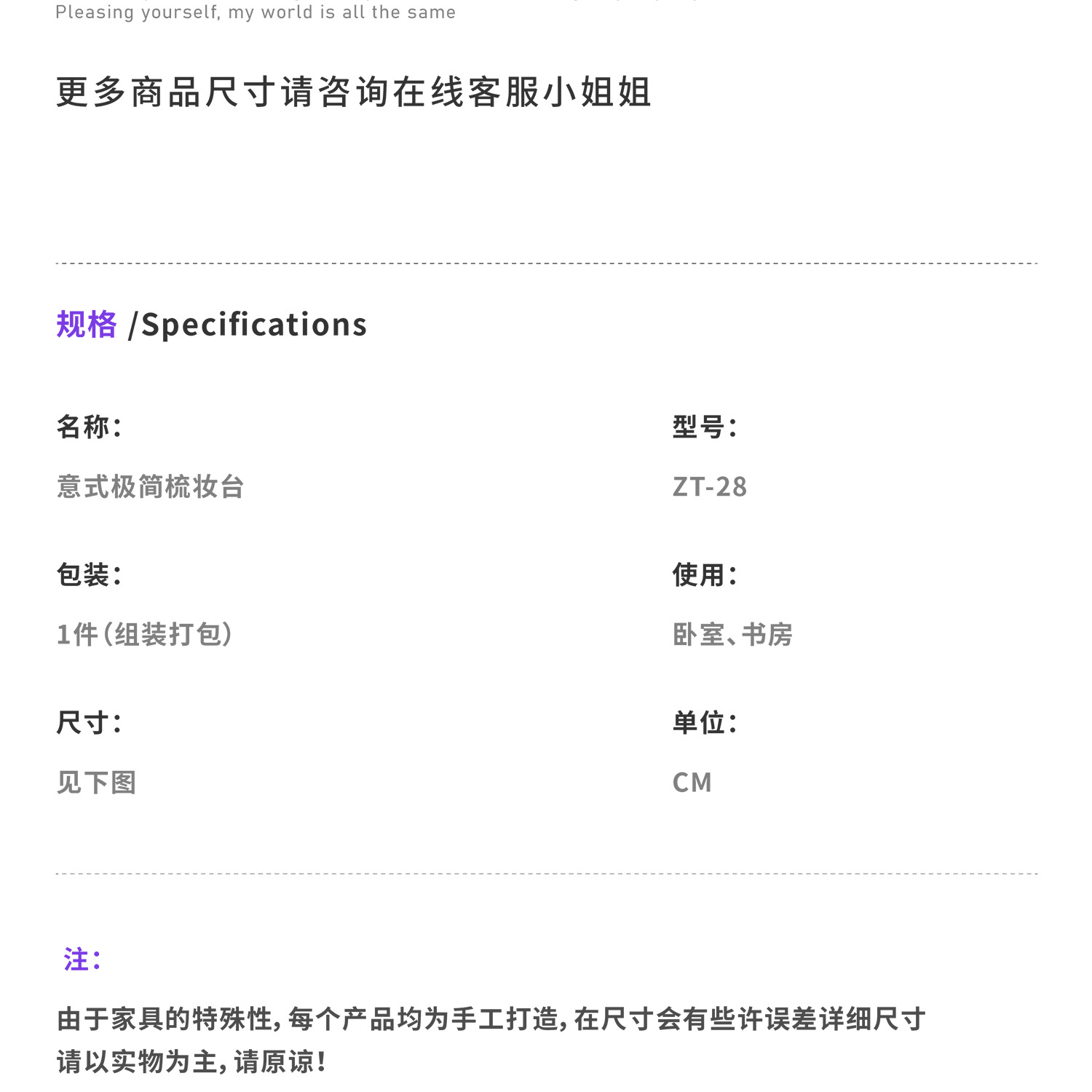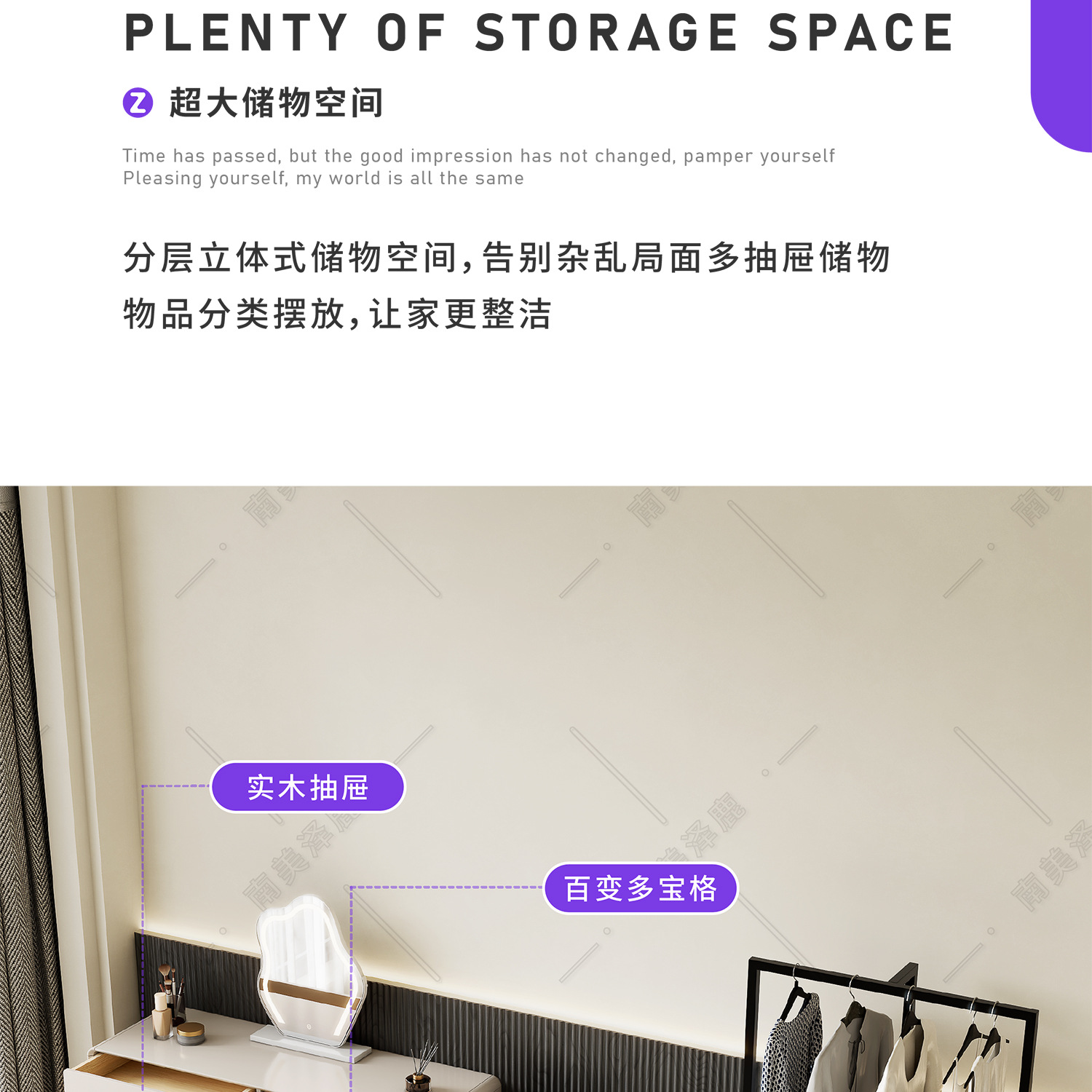 商品名稱:实木梳妆台斗柜一体意式轻奢主卧可伸缩现代极简感简约床尾柜