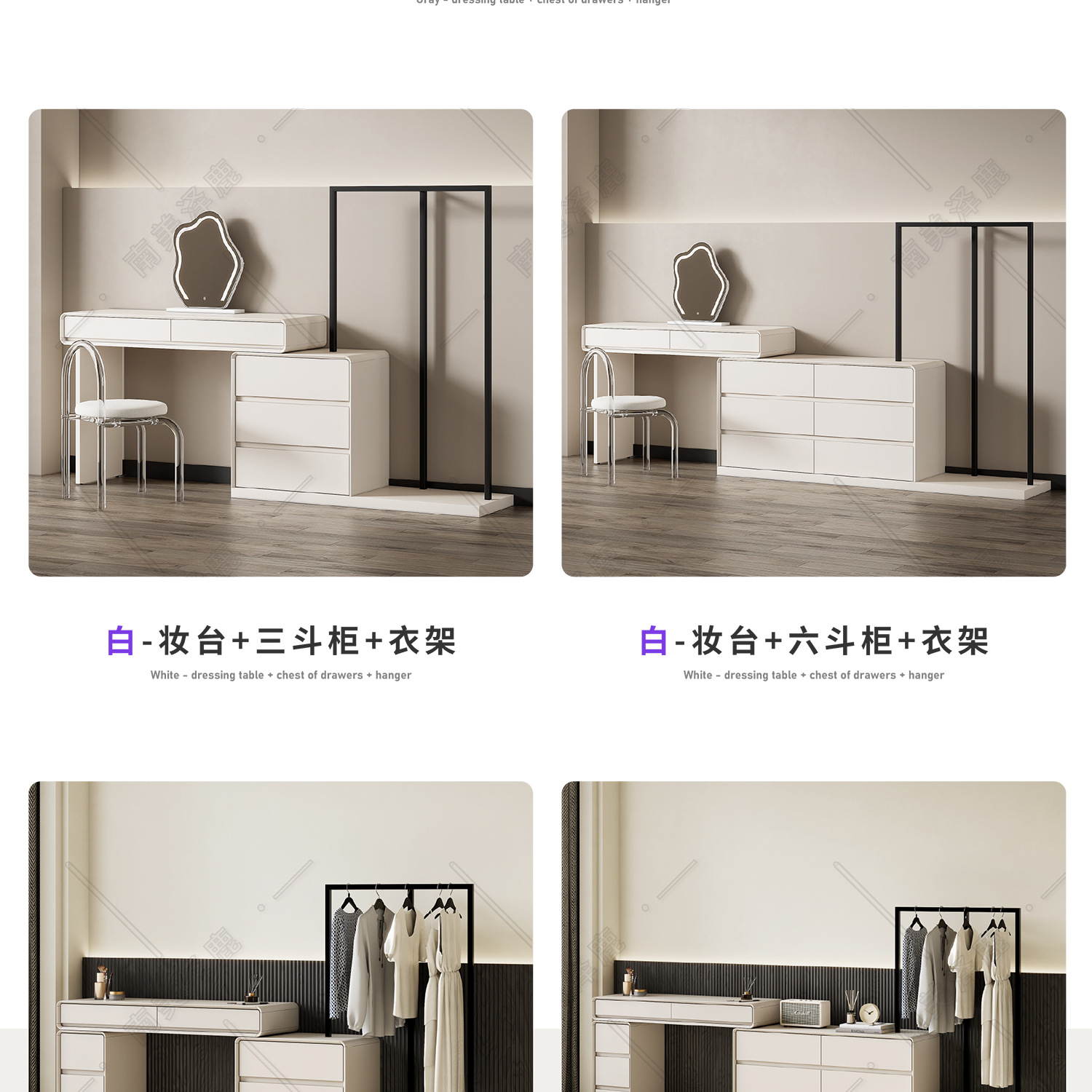 六斗柜+妆台+小云朵镜+衣架+旋转椅