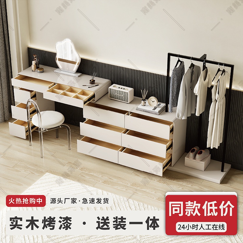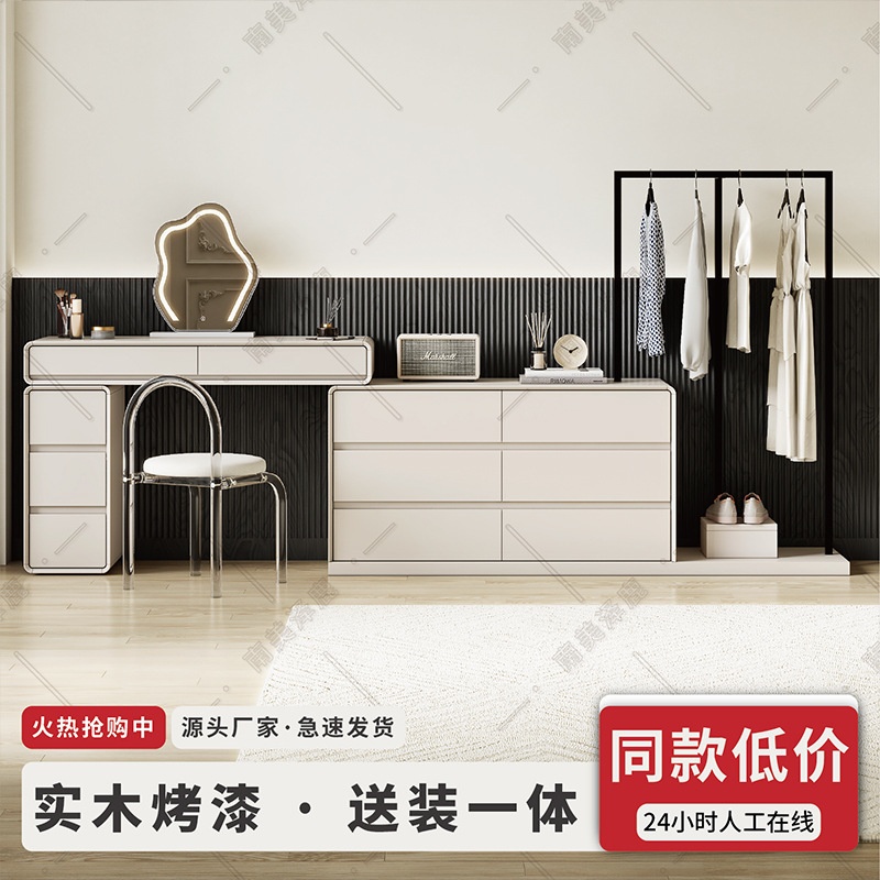 实木梳妆台斗柜一体意式轻奢主卧可伸缩现代极简感简约床尾柜
