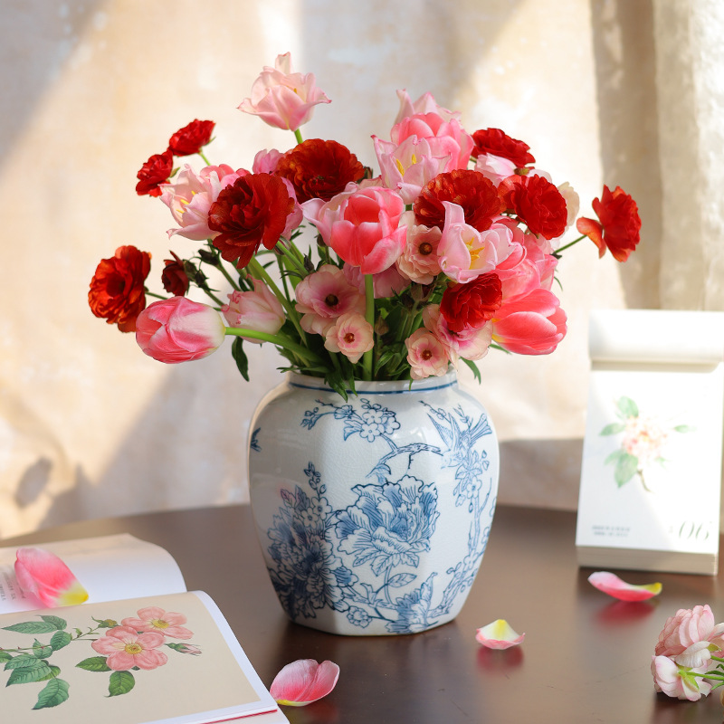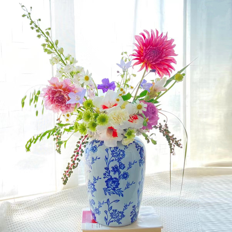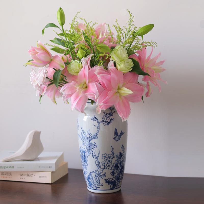 青花瓷花瓶景德镇花瓶水培陶瓷高级感客厅摆件花器一件代发