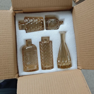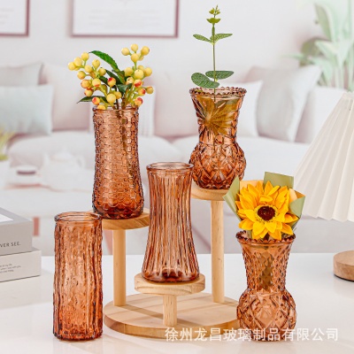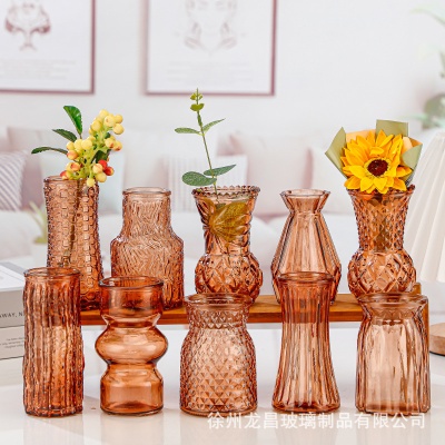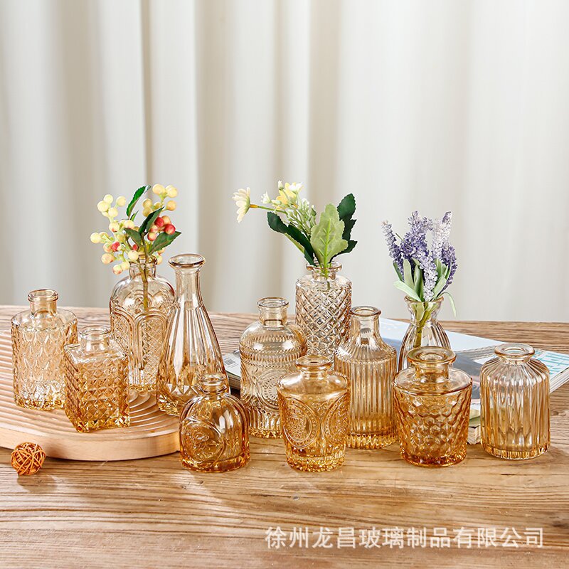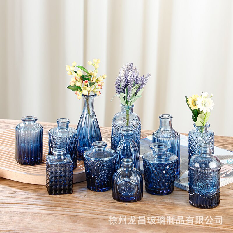 商品名稱:跨境欧式小花瓶套装高级感浮雕彩色家居客厅摆件迷你玻璃插花花瓶