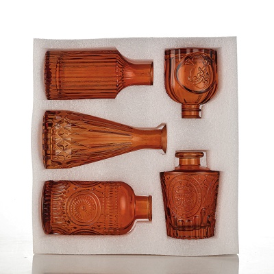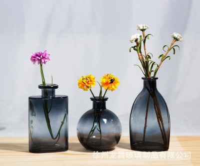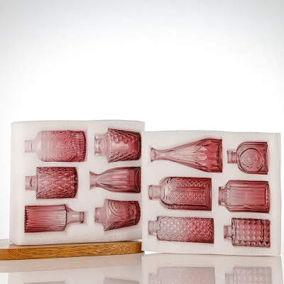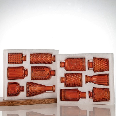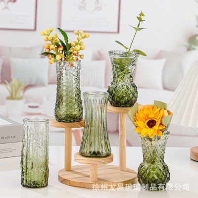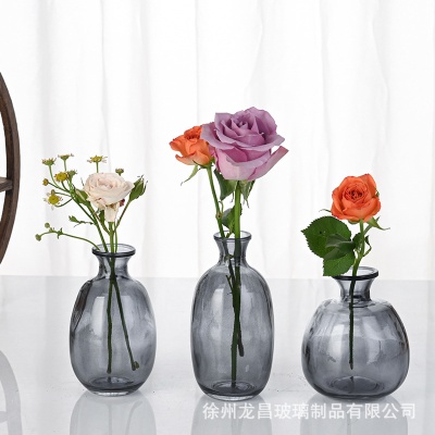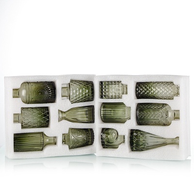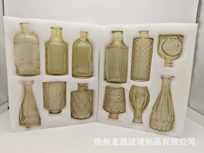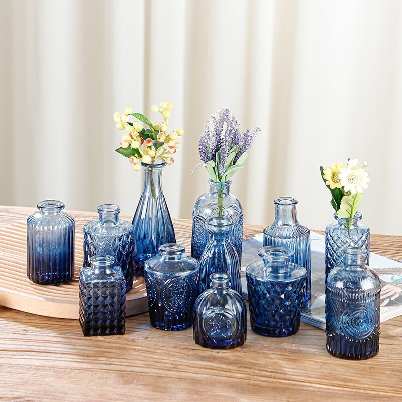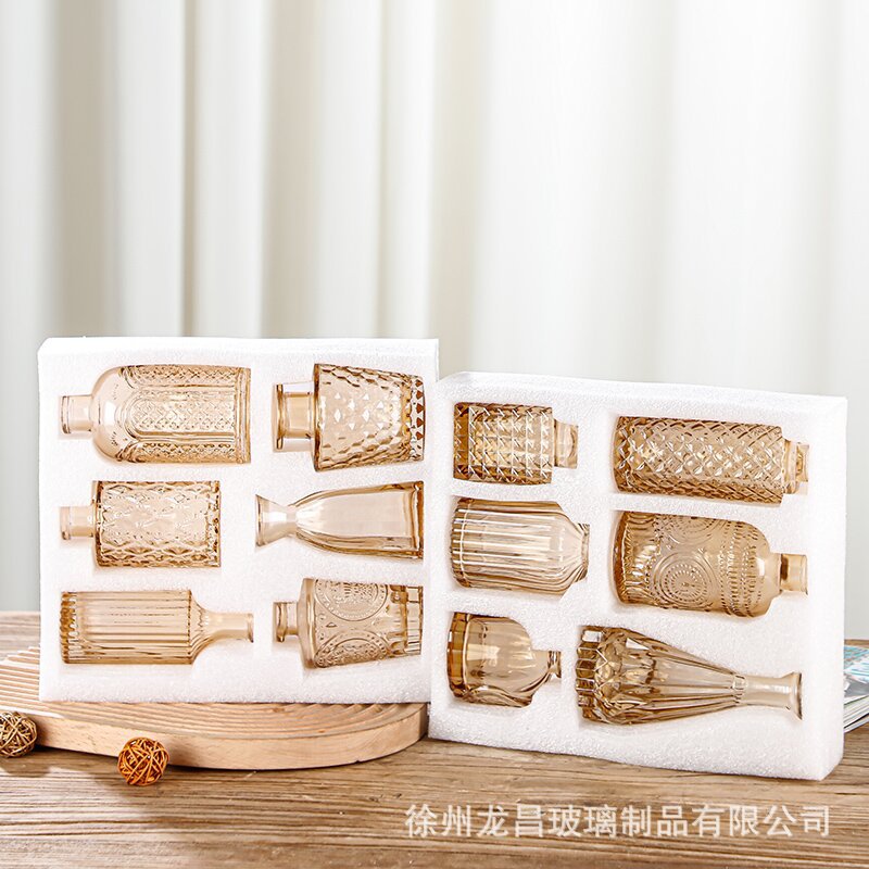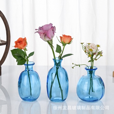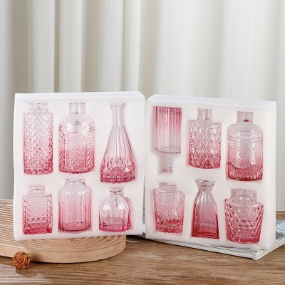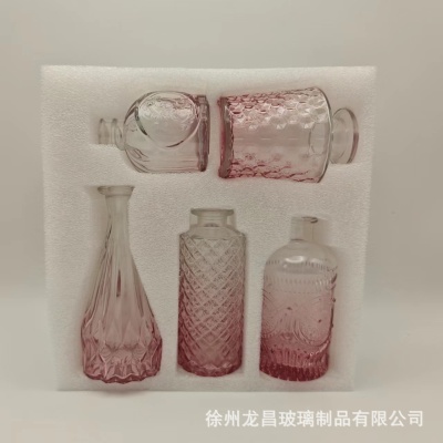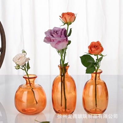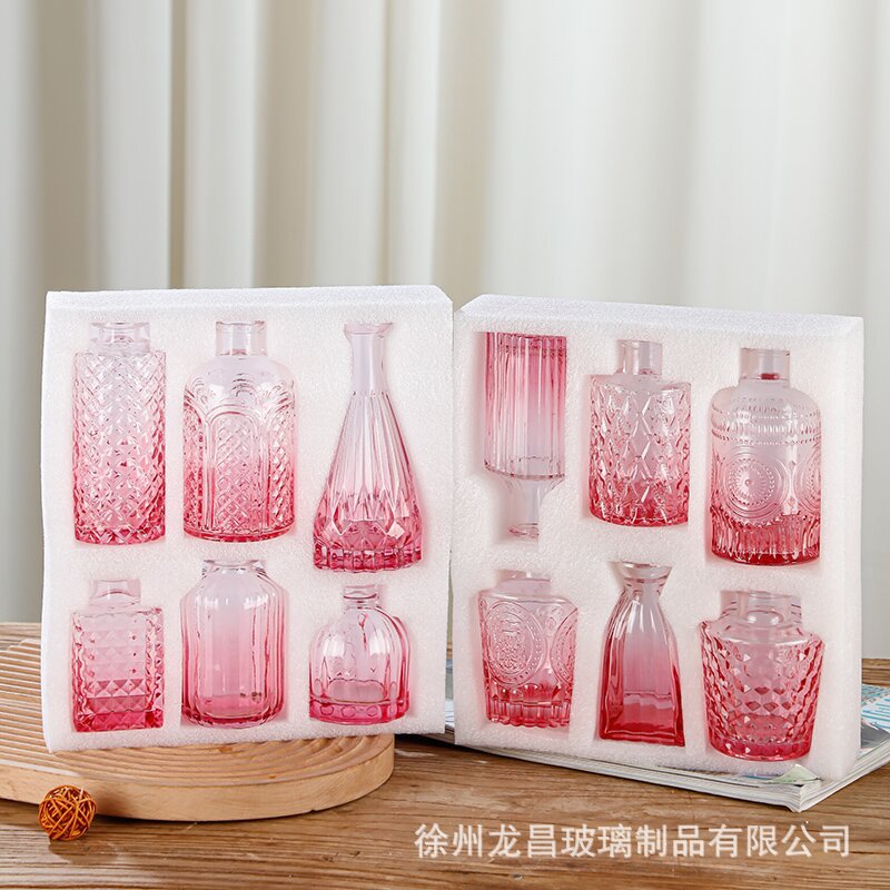 跨境欧式小花瓶套装高级感浮雕彩色家居客厅摆件迷你玻璃插花花瓶
