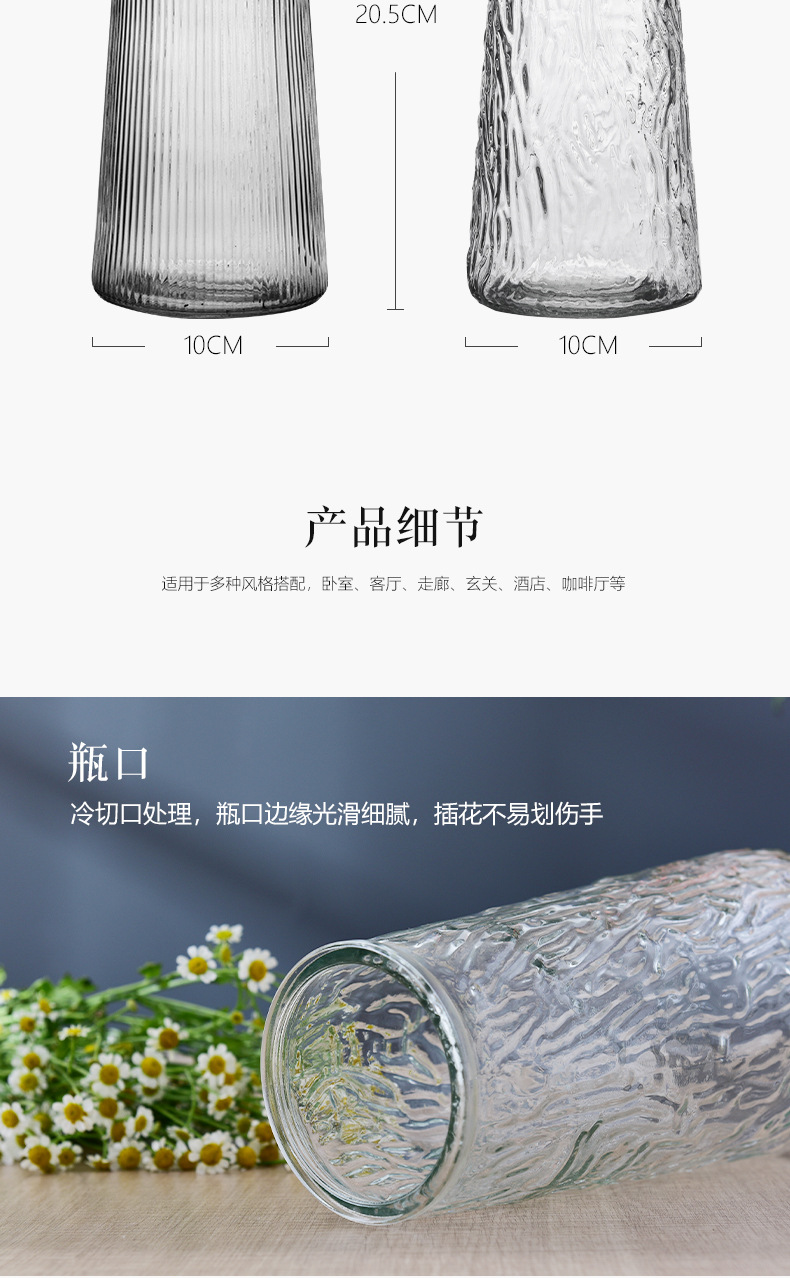 商品名稱:简约透明玻璃花瓶桌面插花水养干花鲜花花瓶ins风高颜值客厅摆件
