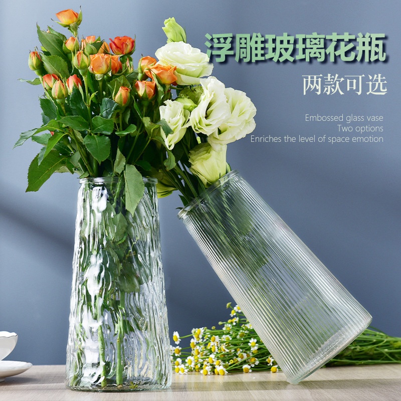 简约透明玻璃花瓶桌面插花水养干花鲜花花瓶ins风高颜值客厅摆件