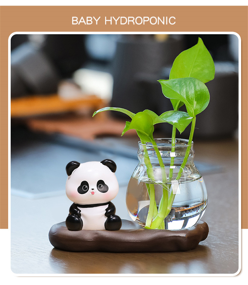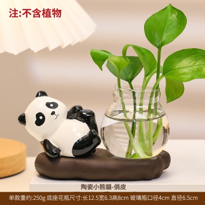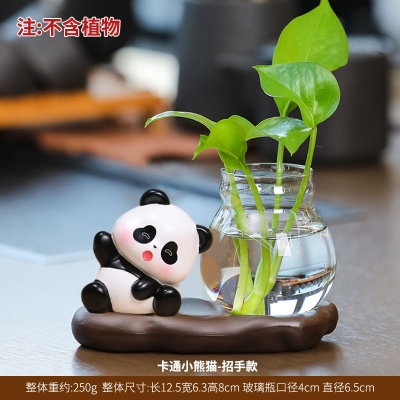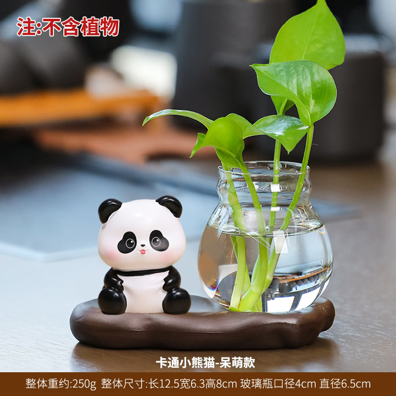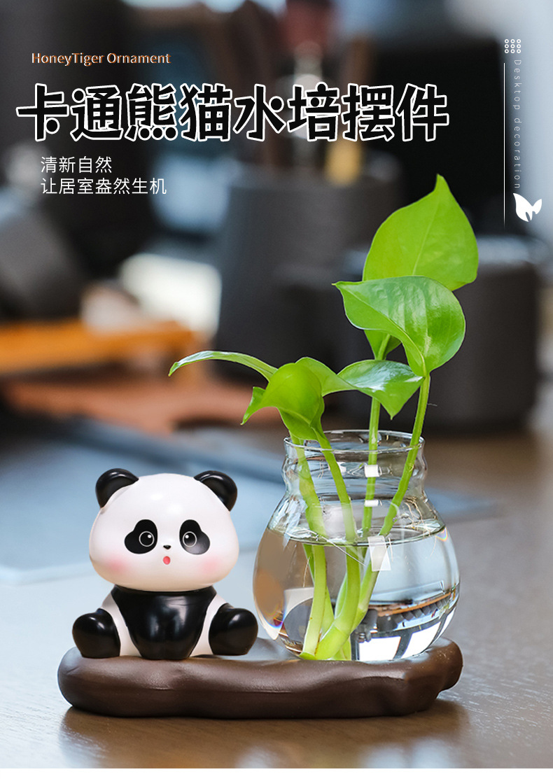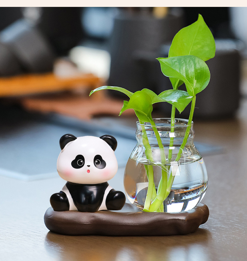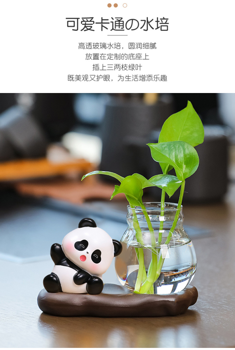 商品名稱:熊猫水培花瓶桌面摆件办公室水养植物花器女生工位办公桌装饰公仔
