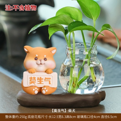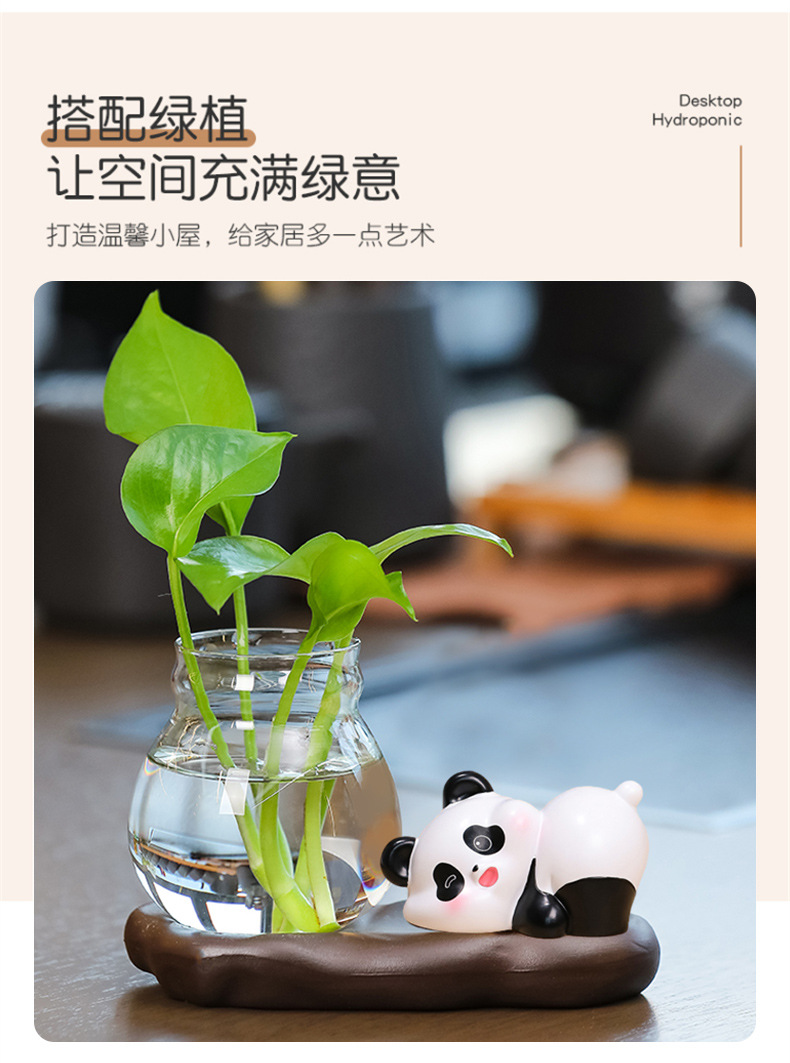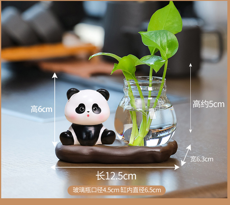 熊猫水培花瓶桌面摆件办公室水养植物花器女生工位办公桌装饰公仔
