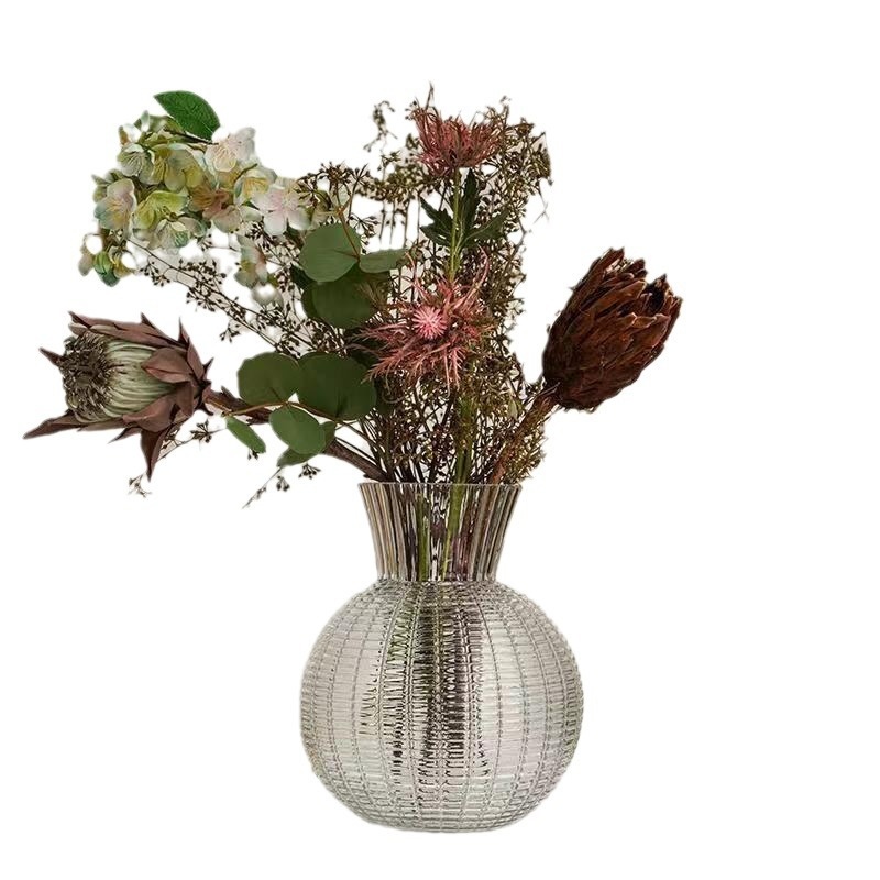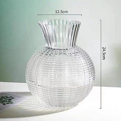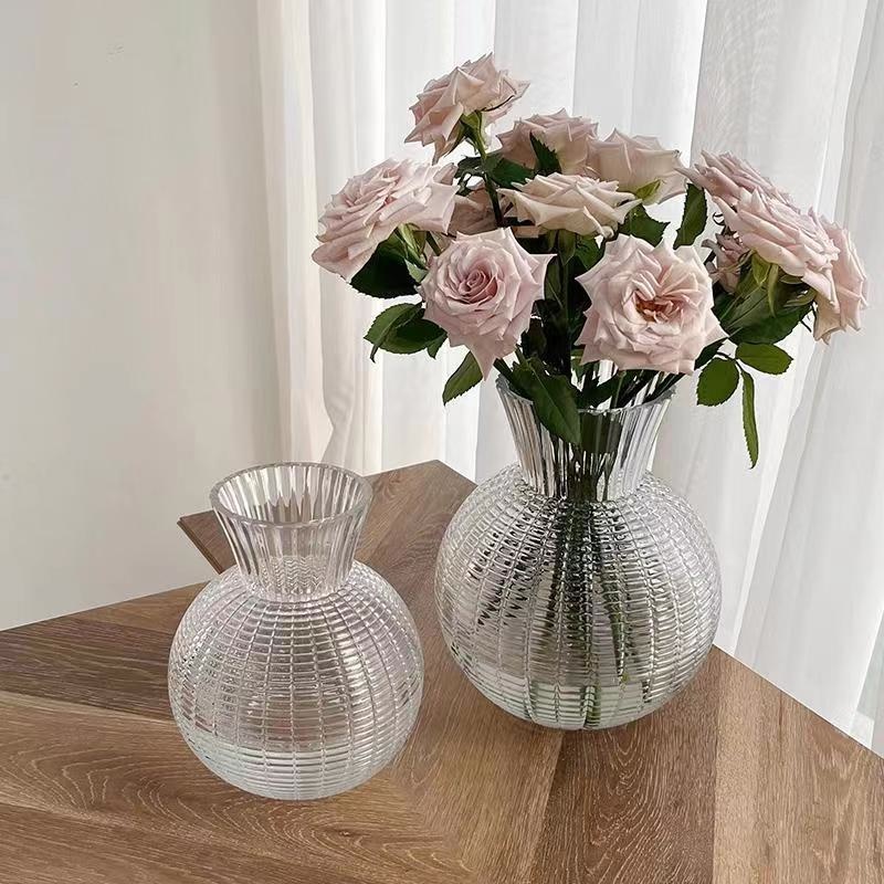 北欧玻璃花瓶透明 竖纹 创意客厅插花玫瑰百合鲜花家用装饰摆件