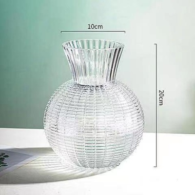 商品名稱:北欧玻璃花瓶透明 竖纹 创意客厅插花玫瑰百合鲜花家用装饰摆件