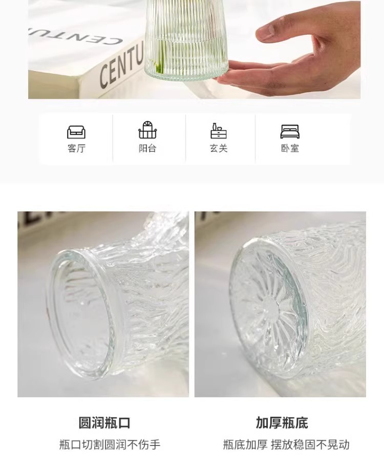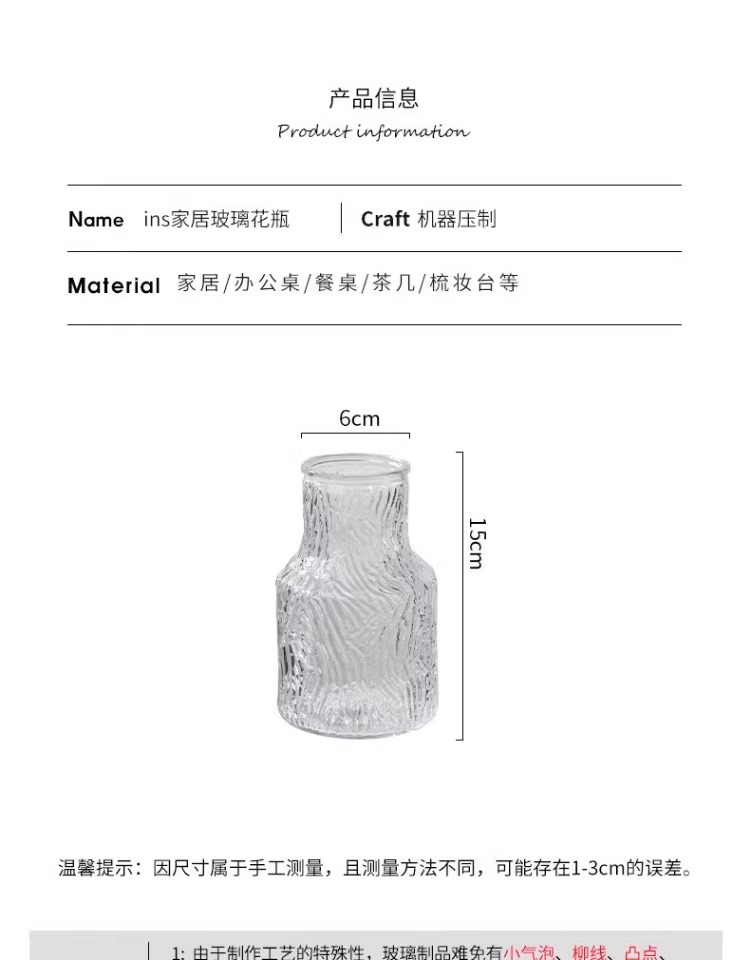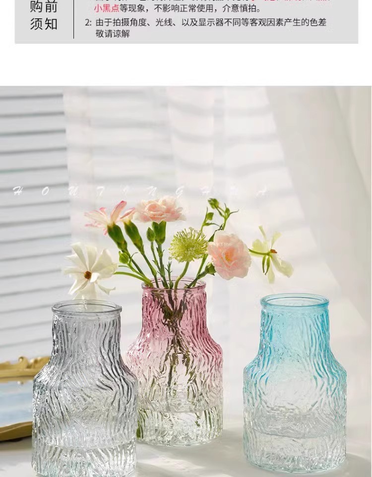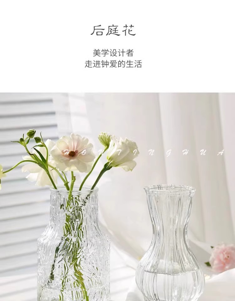 商品名稱:创意玻璃花瓶网红高级感水养鲜花玫瑰插花瓶餐桌客厅桌面冰川摆件