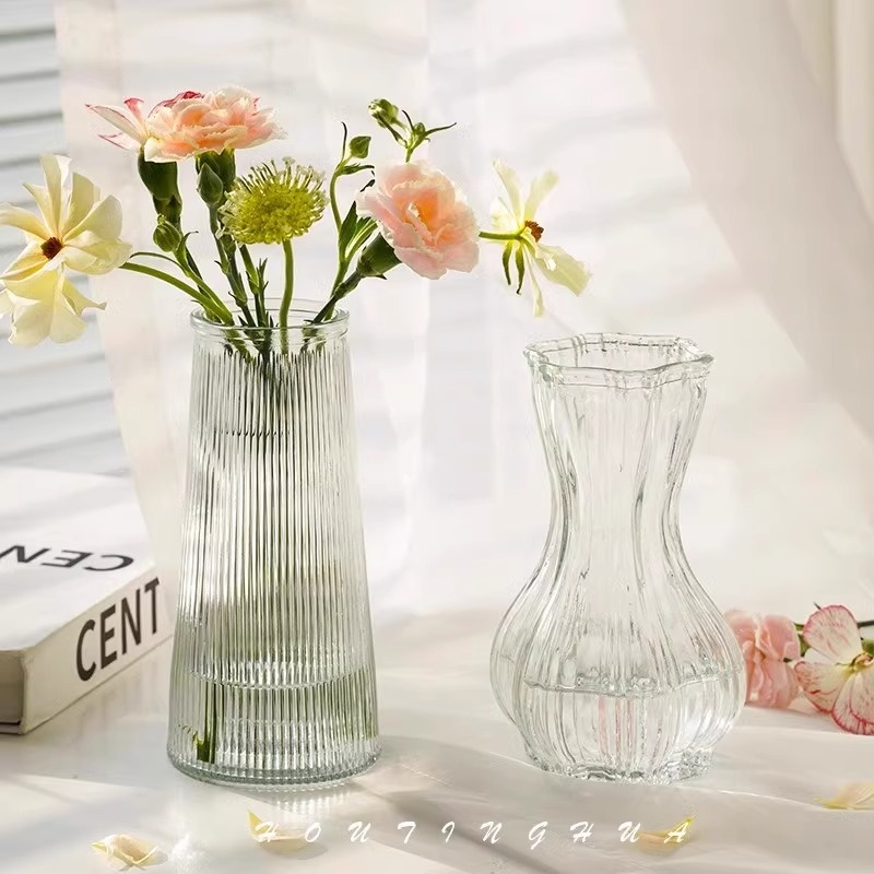 创意玻璃花瓶网红高级感水养鲜花玫瑰插花瓶餐桌客厅桌面冰川摆件