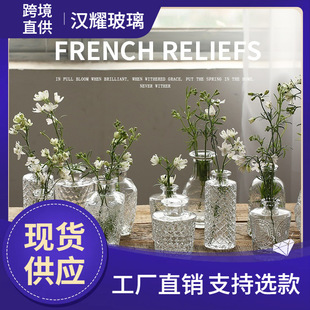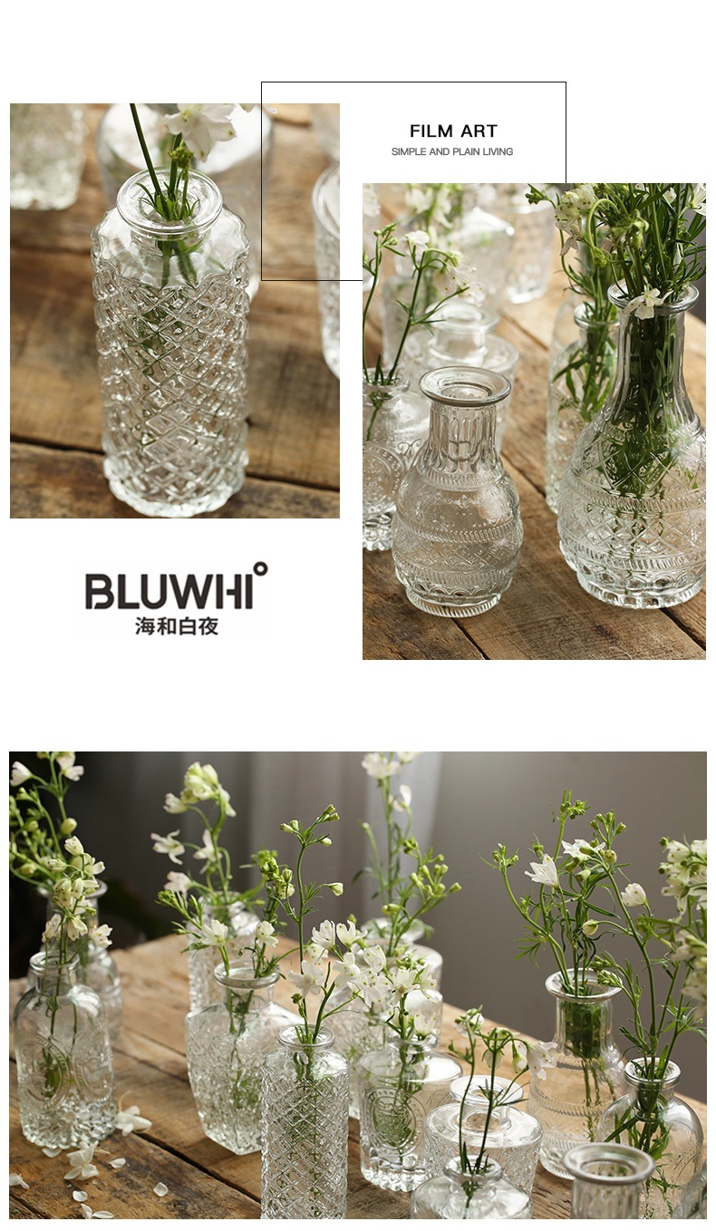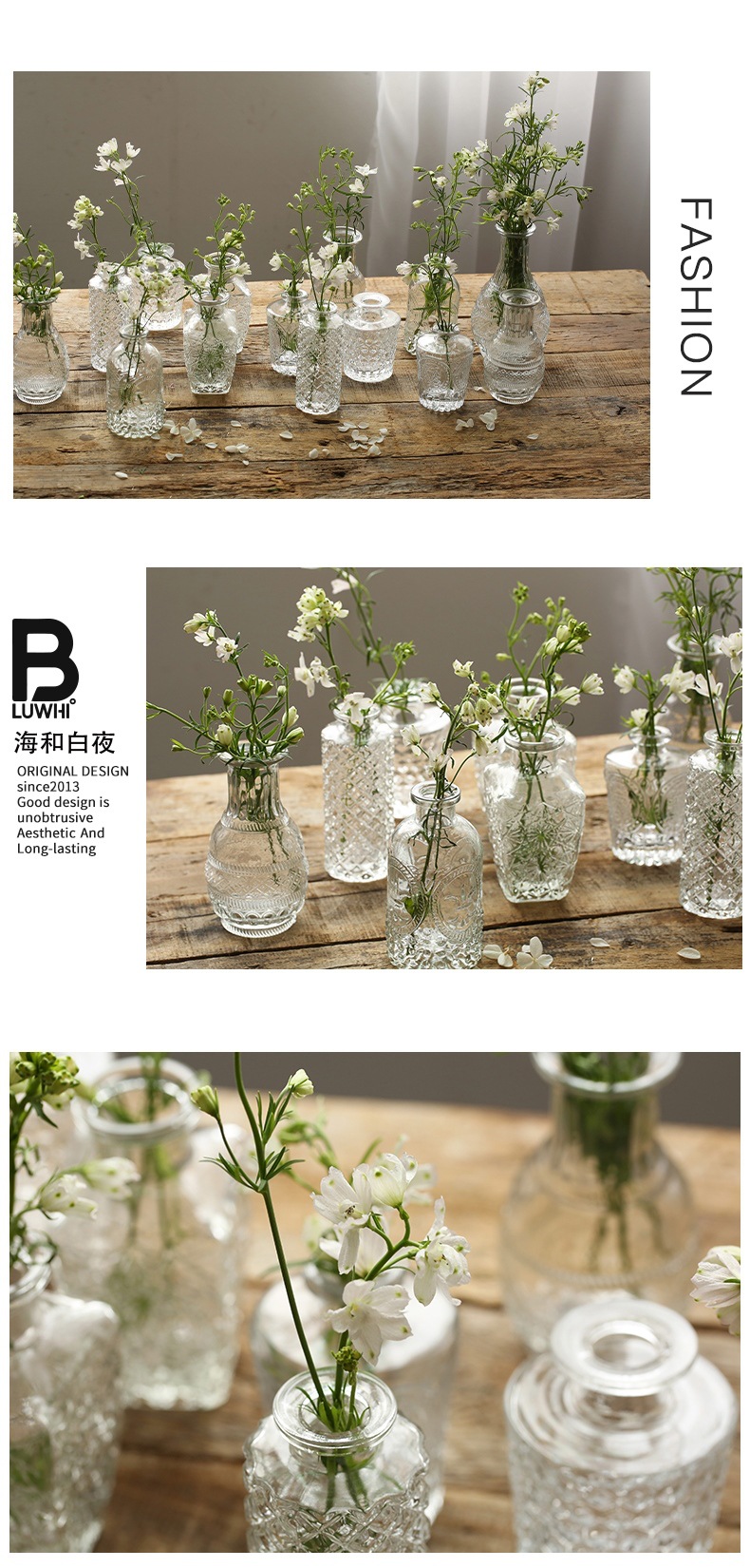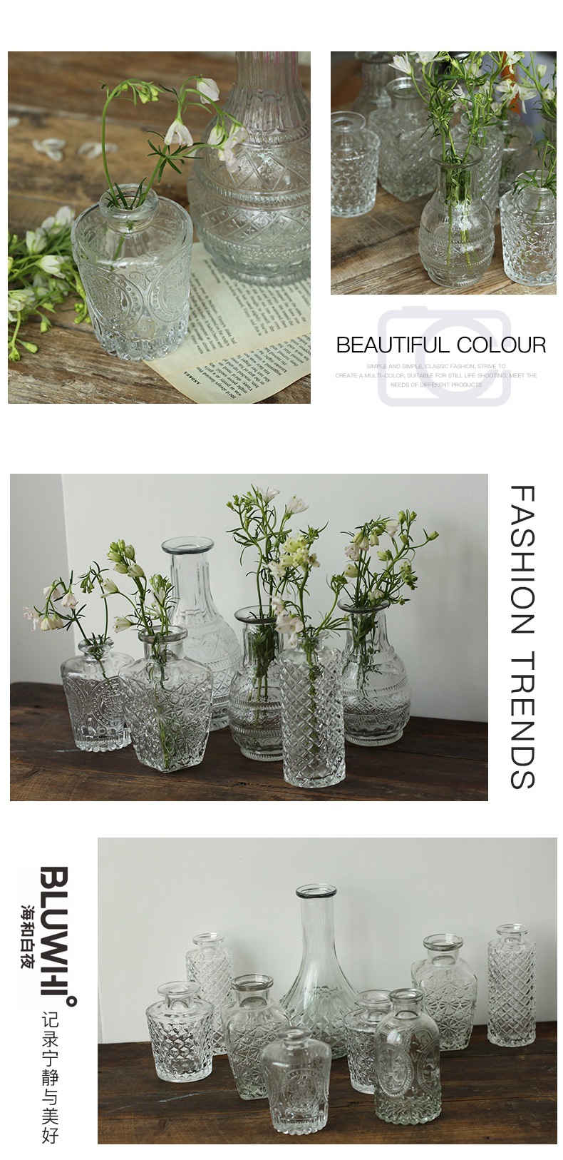 法式复古轻奢浮雕透明迷你玻璃花瓶客厅ins风家居摆件插花小花瓶