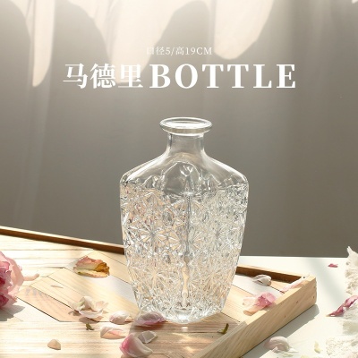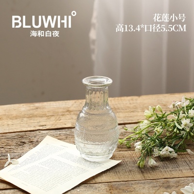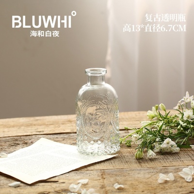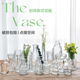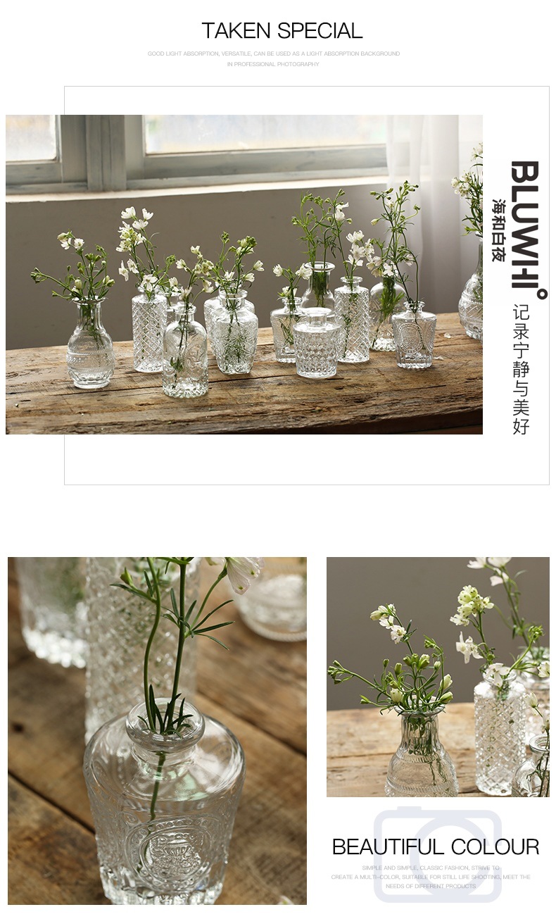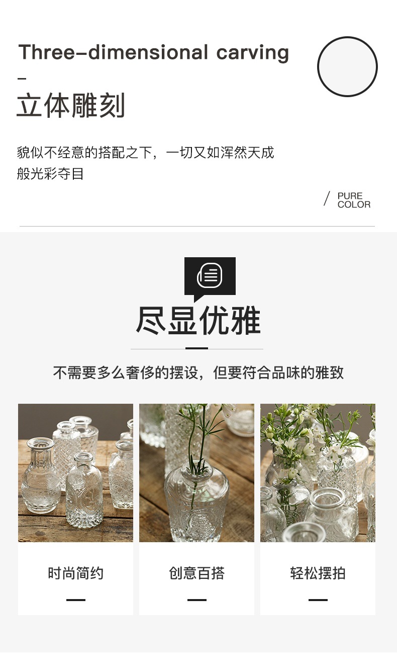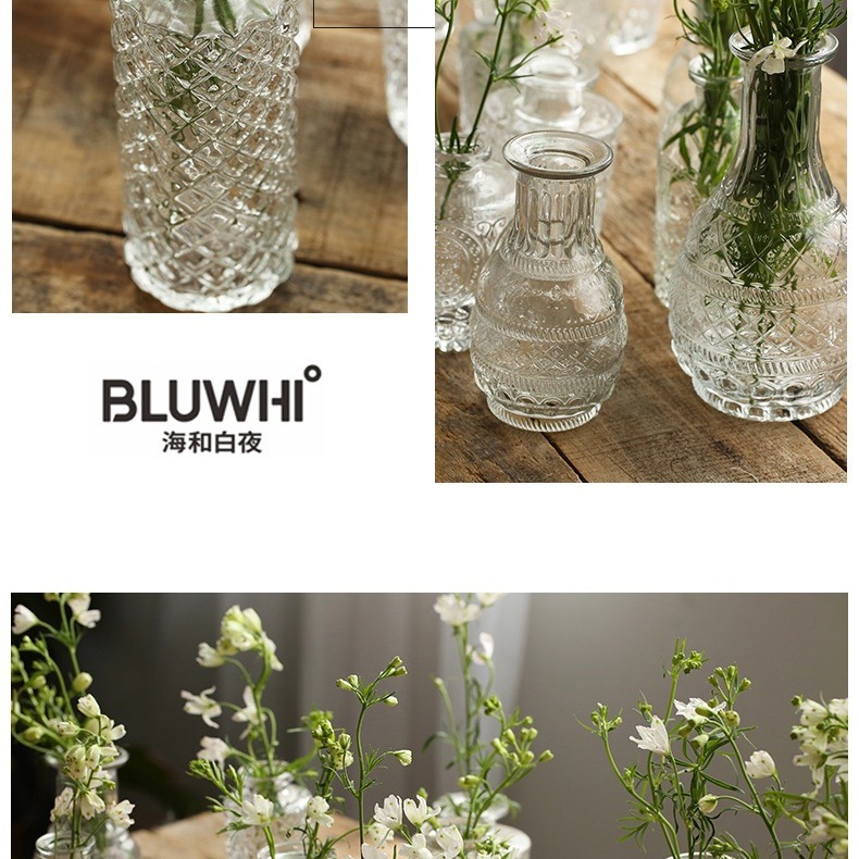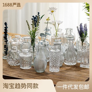 法式复古轻奢浮雕透明迷你玻璃花瓶客厅ins风家居摆件插花小花瓶
