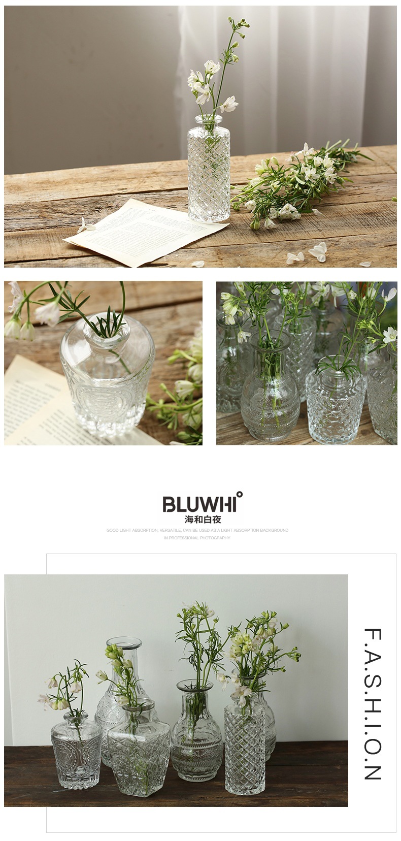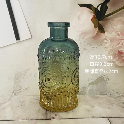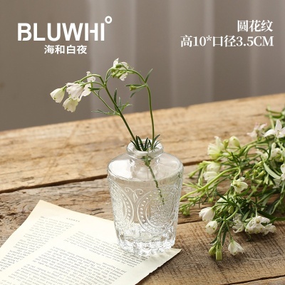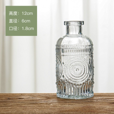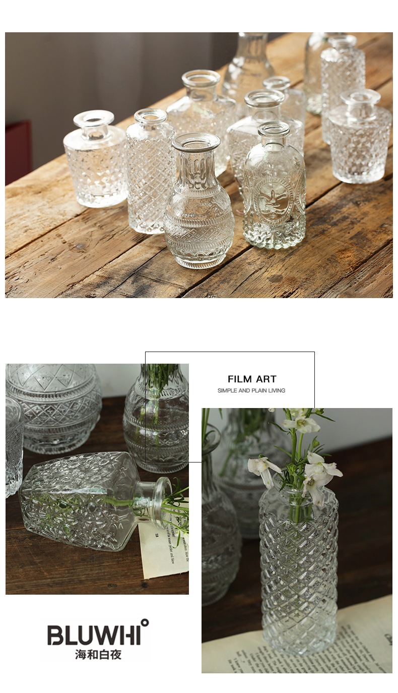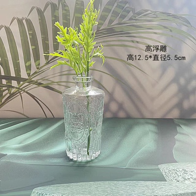 复古玻璃小花瓶浮雕欧式小口径迷你花瓶干鲜花插花花器水培摆件
