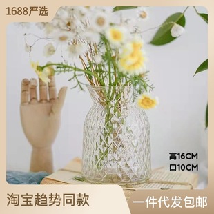 欧式玻璃花瓶ins风创意插花水养干花鲜花大口径透明花瓶客厅摆件