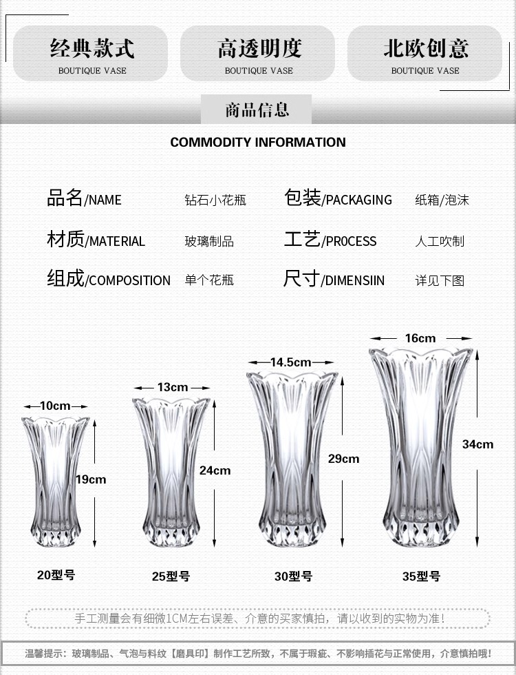 商品名稱:简约大号玻璃花瓶透明插花客厅摆件水培富贵竹花瓶百合干花桌面厂