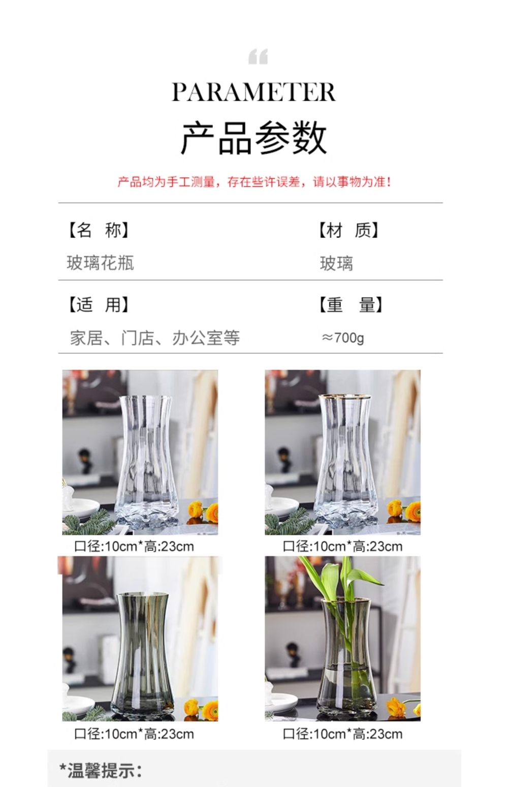 商品名稱:网红爆款花瓶简约玻璃花瓶摆件客厅插花透明水培鲜花玫瑰百合北欧