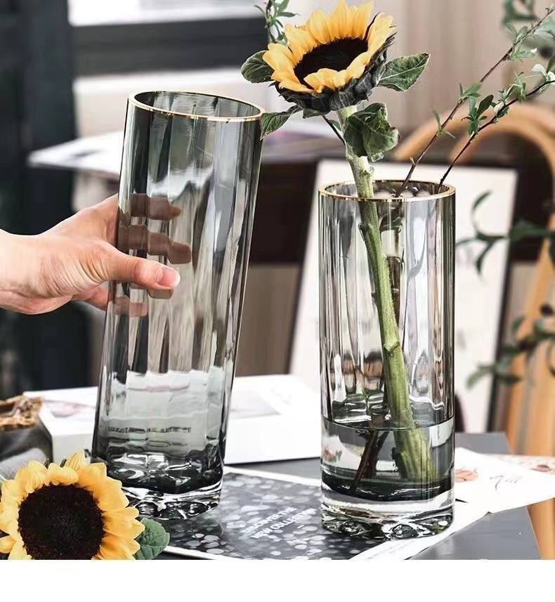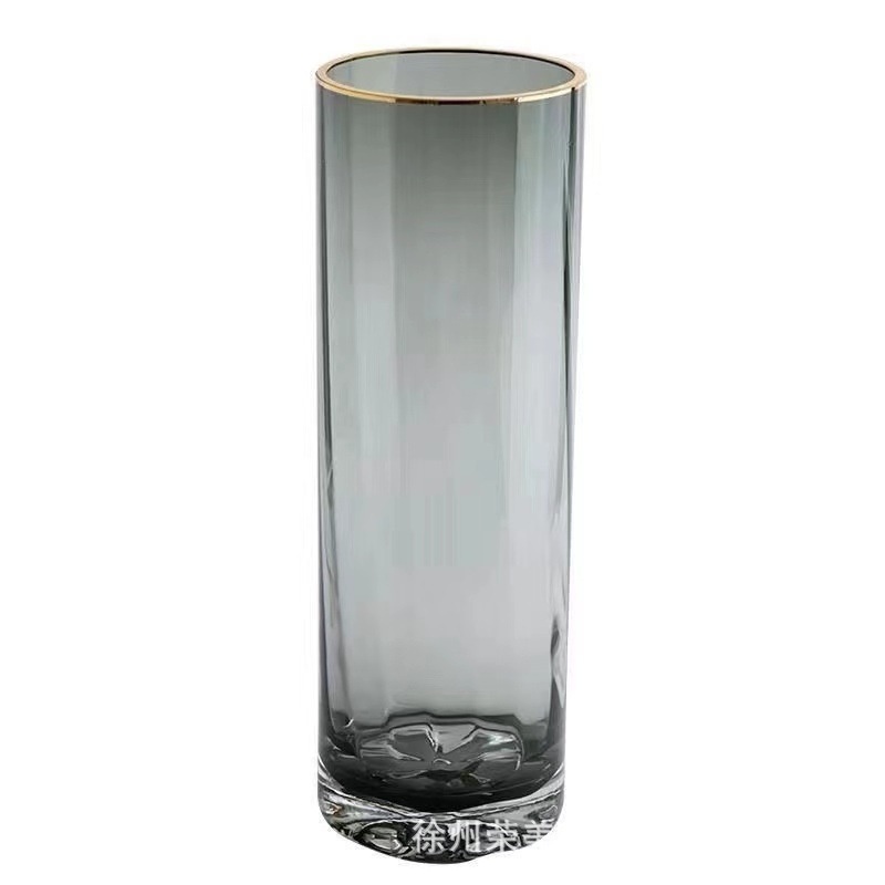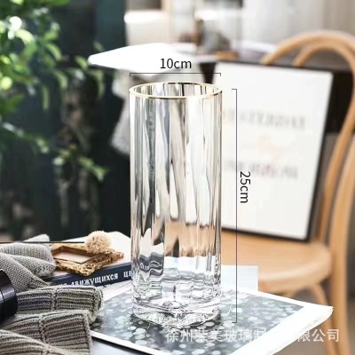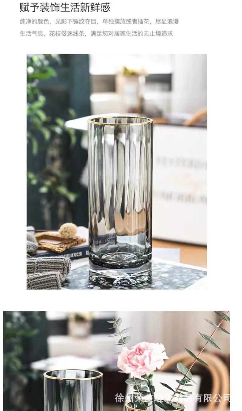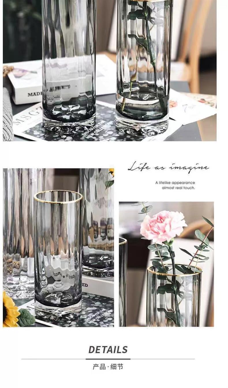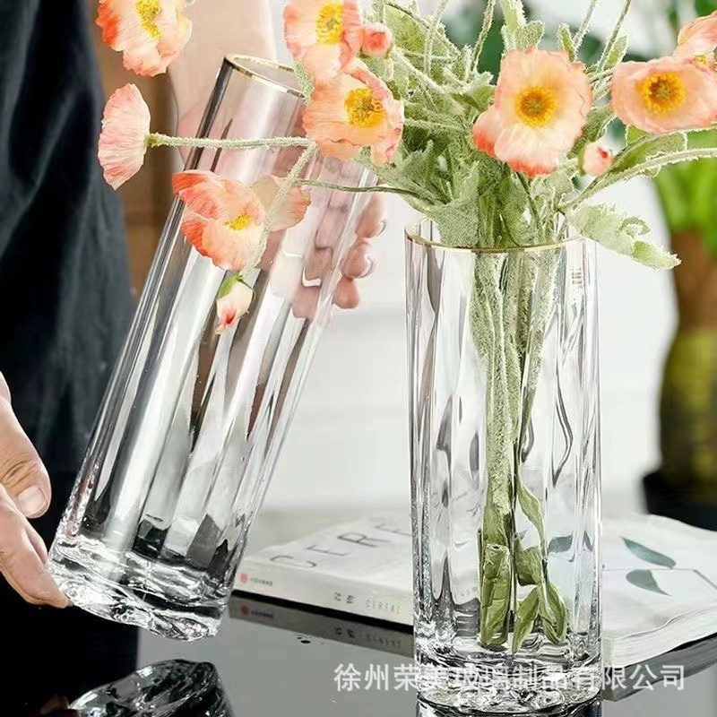 北欧风透明玻璃花瓶轻奢直筒花瓶简约水养富贵竹百合花插花瓶摆件