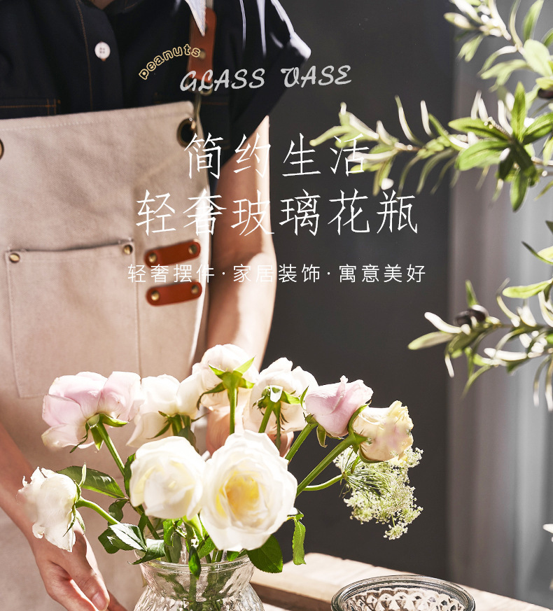 商品名稱:新款创意收口玻璃花瓶彩色布袋水培插花瓶居家办公水养鲜花瓶装饰