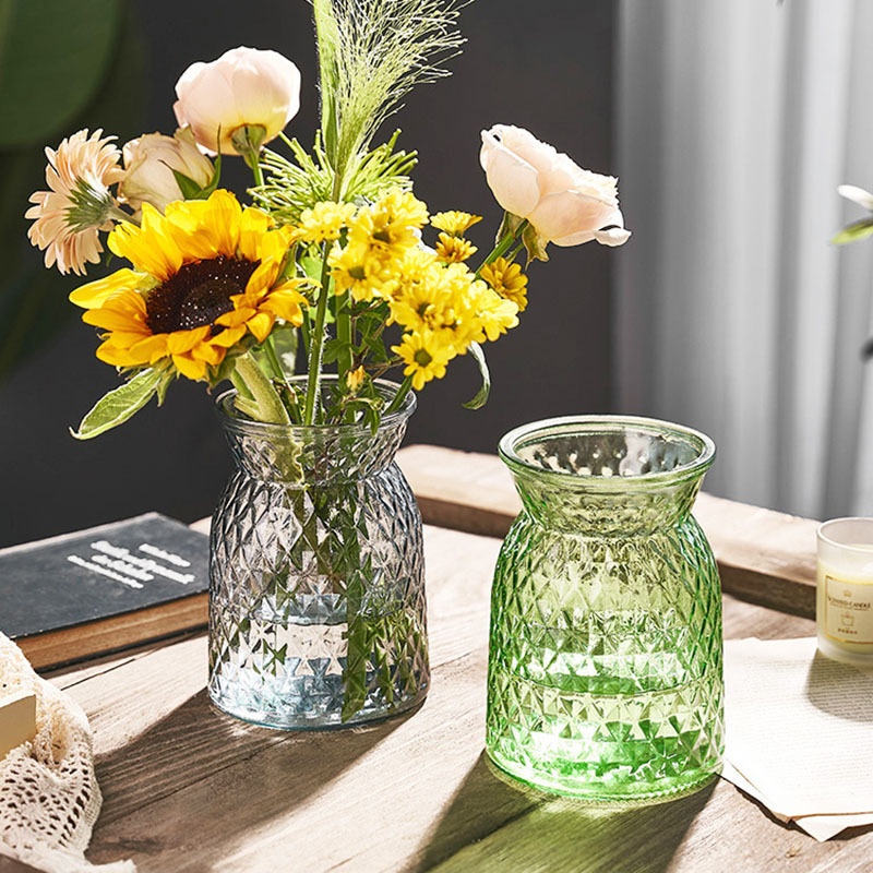新款创意收口玻璃花瓶彩色布袋水培插花瓶居家办公水养鲜花瓶装饰