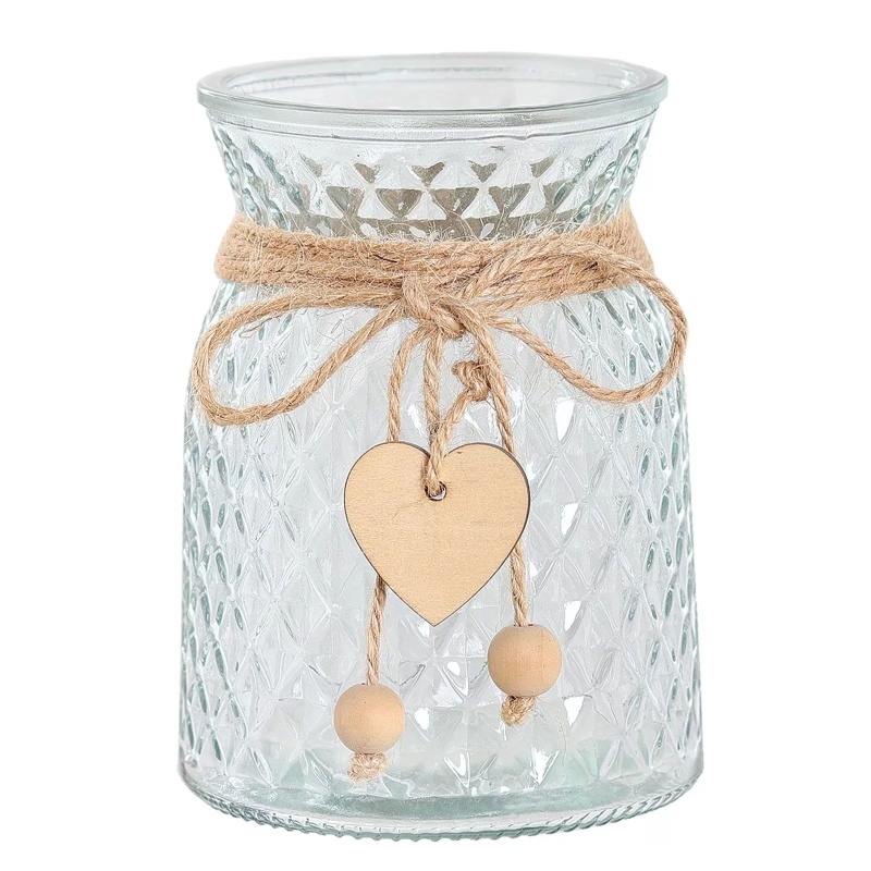 跨境收腰玻璃花瓶桌面 :布袋麻绳爱心珠子