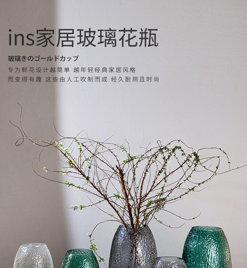 商品名稱:落地大花瓶菩提玻璃花瓶透明鲜花富贵竹雪柳鲜枝水养插花客厅摆件
