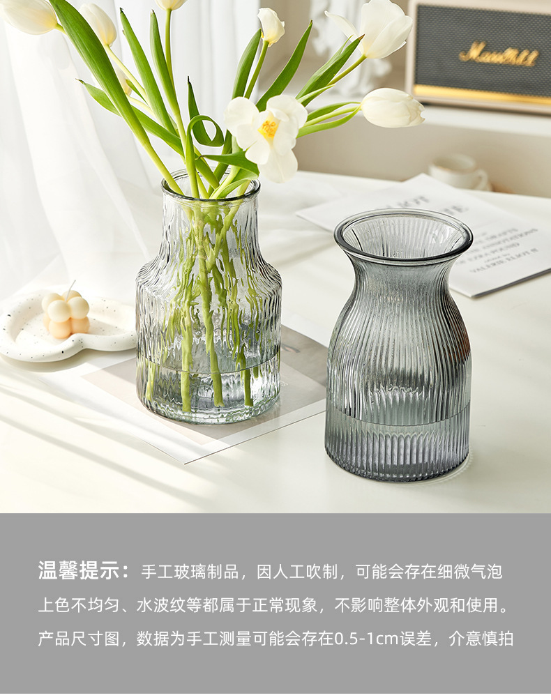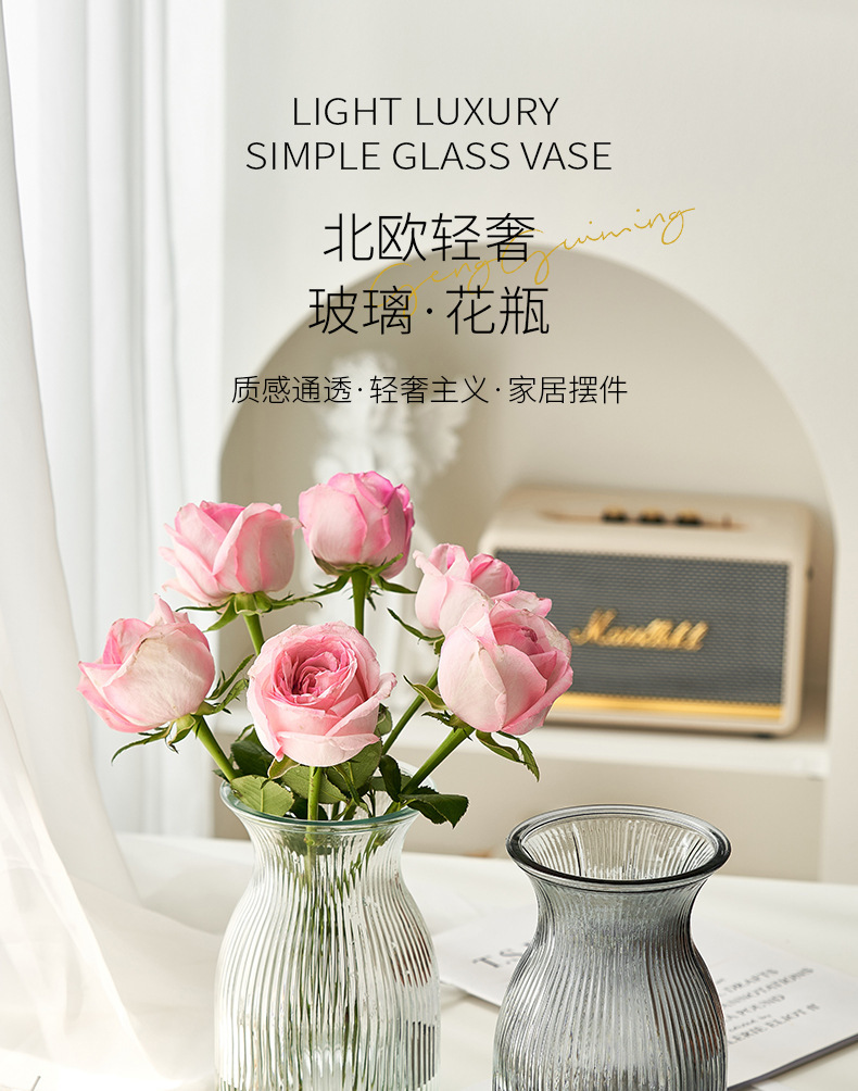 批发简约透明玻璃花瓶水培玫瑰干鲜花北欧ins风客厅插花桌面摆件