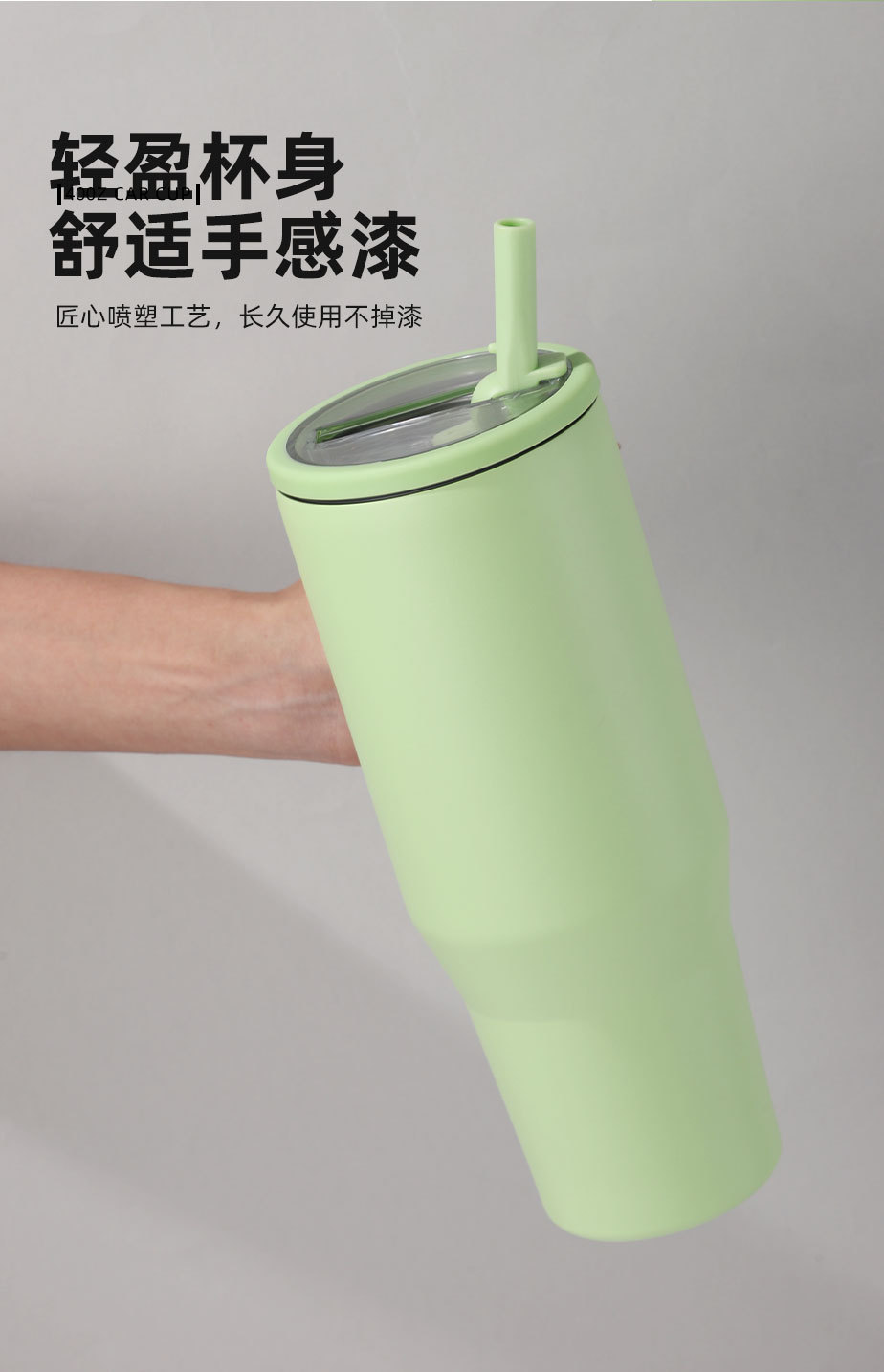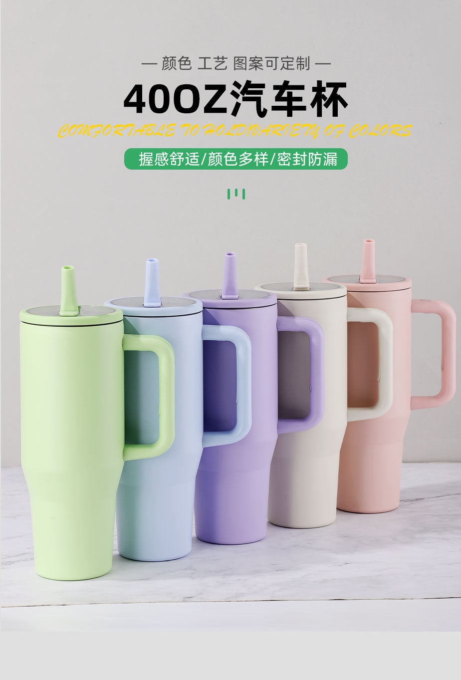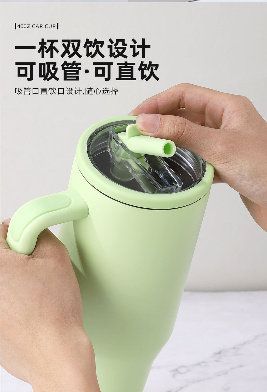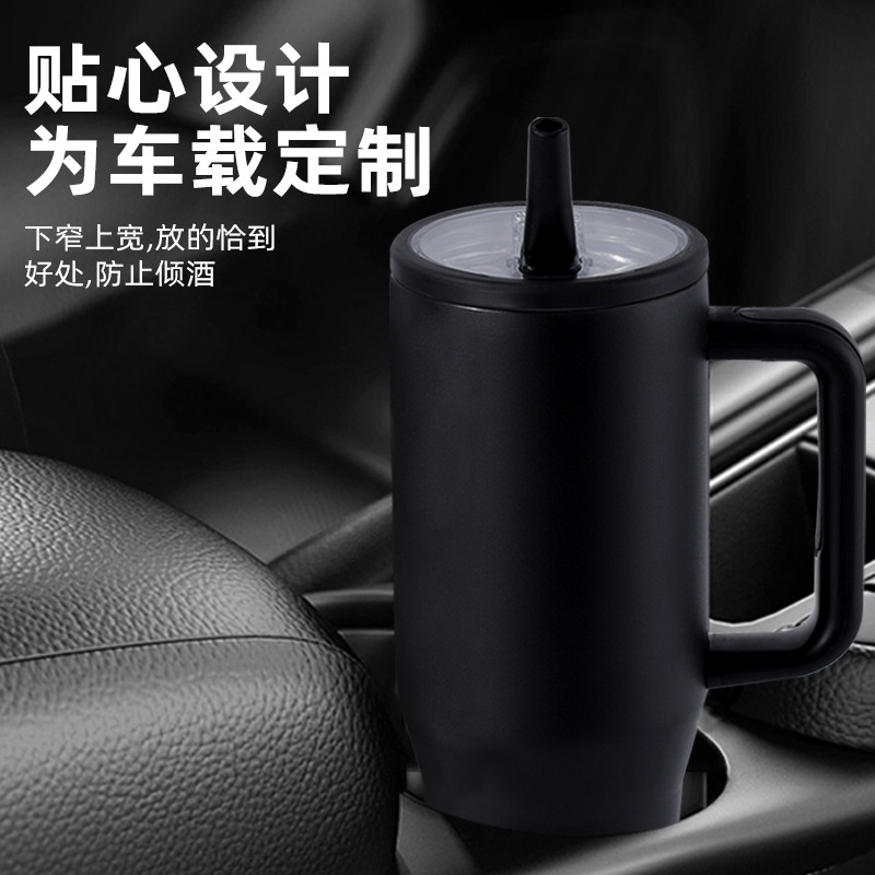 跨境热品40oz双层冰霸杯防漏可折叠吸管盖便携直饮口汽车杯
