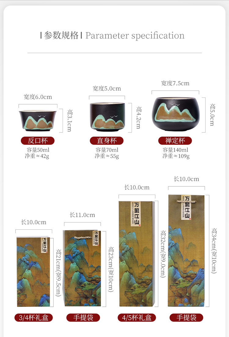 商品名稱:茶杯远山品茗杯国潮文创单杯送客户父亲领导老师商务开业伴手礼品