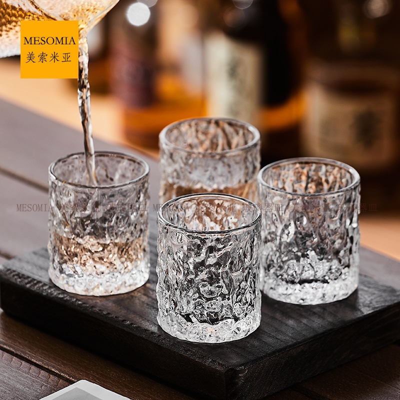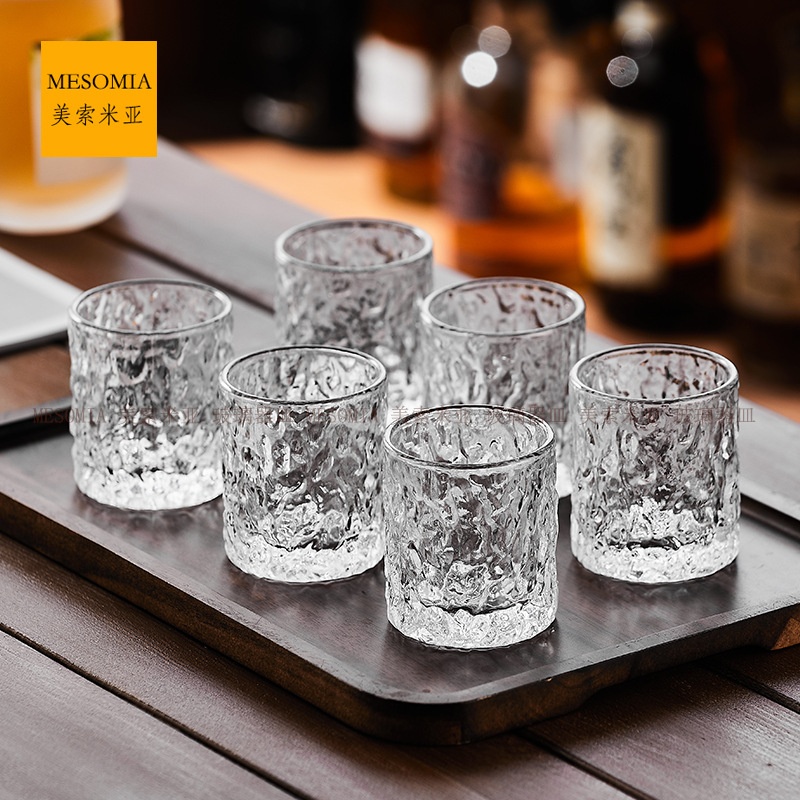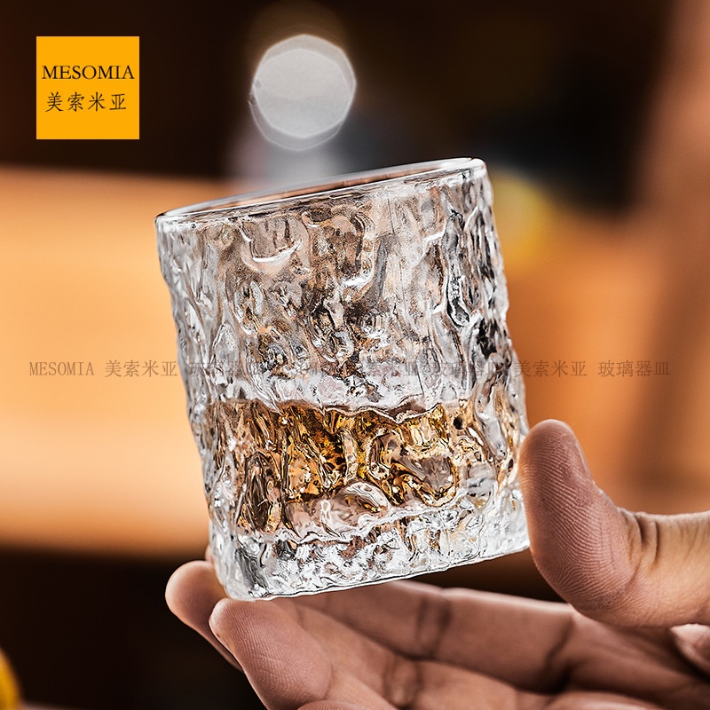美索米亚日式树皮冰川纹玻璃杯个性设计感小茶杯家用小酒杯水杯子