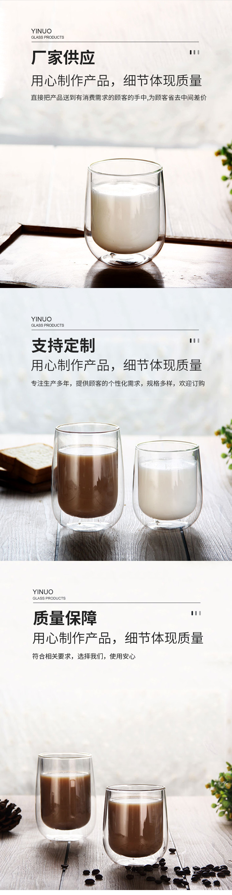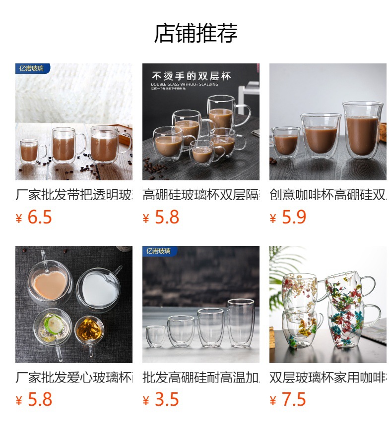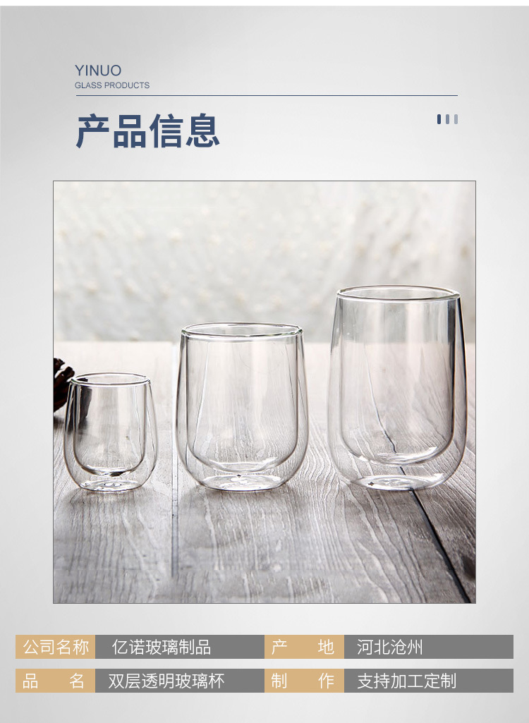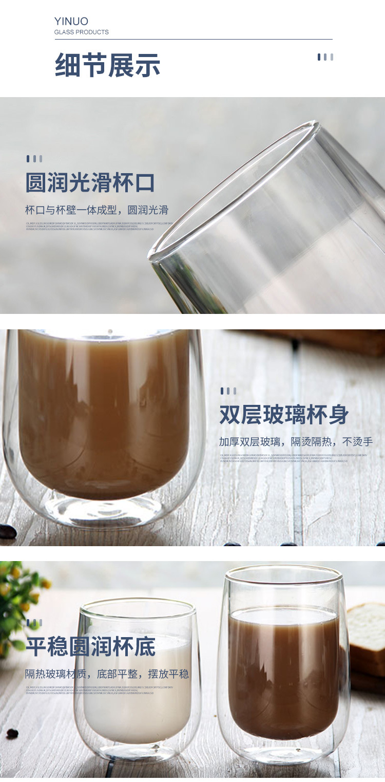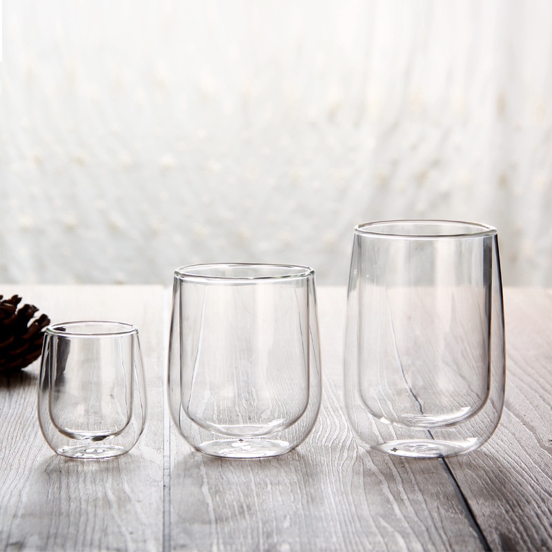 隔热高硼硅玻璃杯耐高温家用牛奶杯咖啡杯办公室茶杯双层玻璃杯