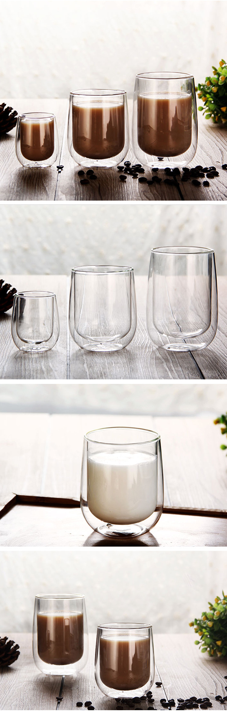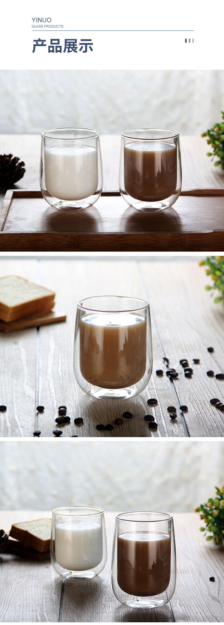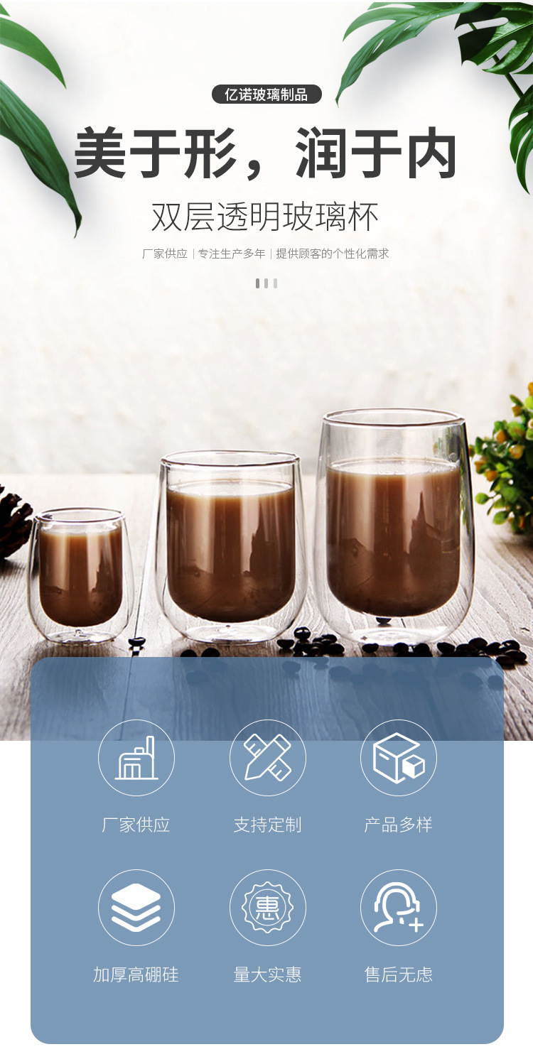隔热高硼硅玻璃杯耐高温家用牛奶杯咖啡杯办公室茶杯双层玻璃杯