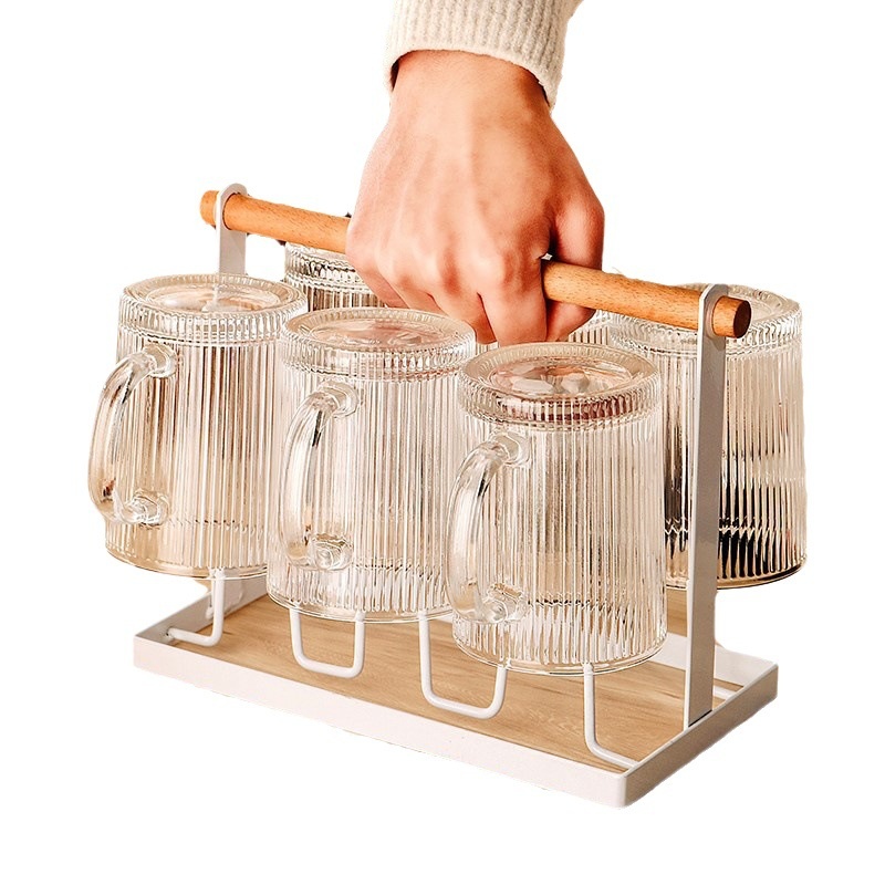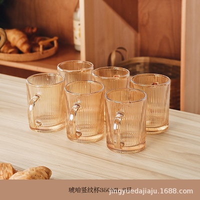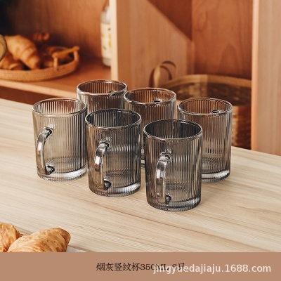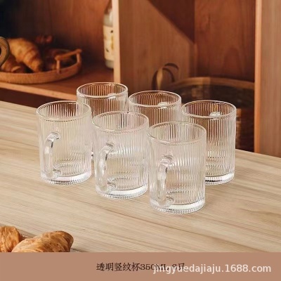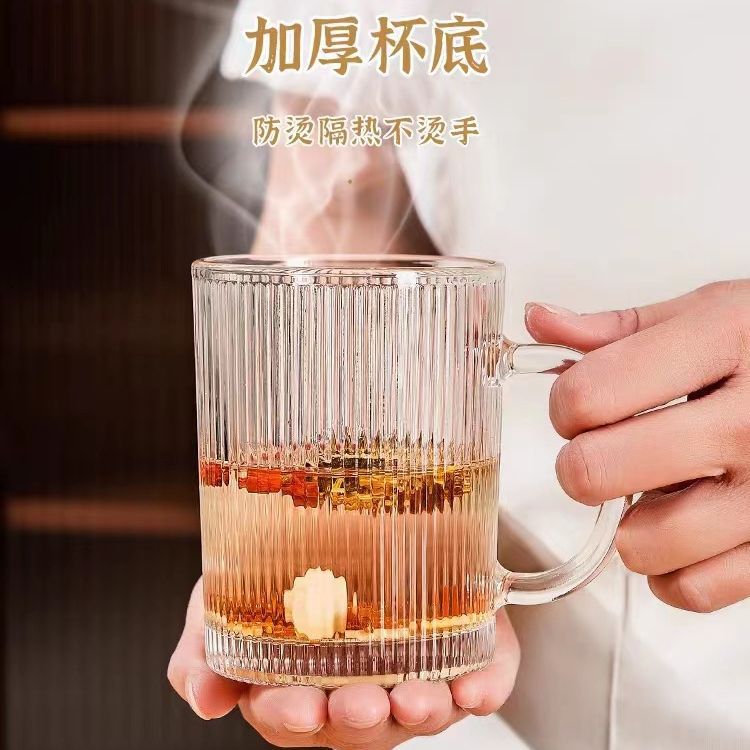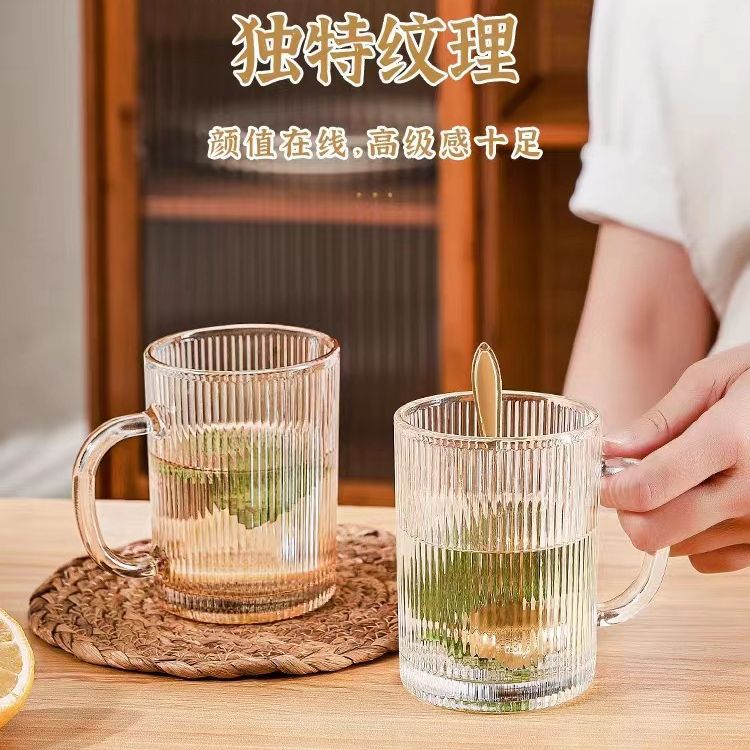 竖纹玻璃杯高颜值网红水杯带把家用茶杯耐高温防爆杯子牛奶咖啡杯