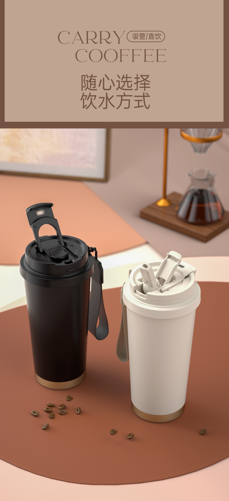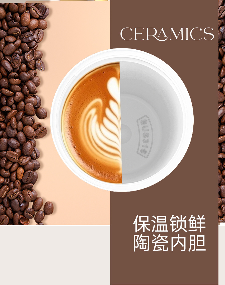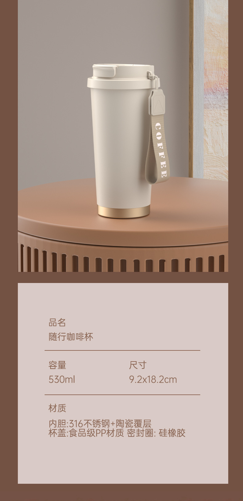 316陶瓷内胆咖啡杯双层真空手提汽车杯商务办公礼品保温杯可logo