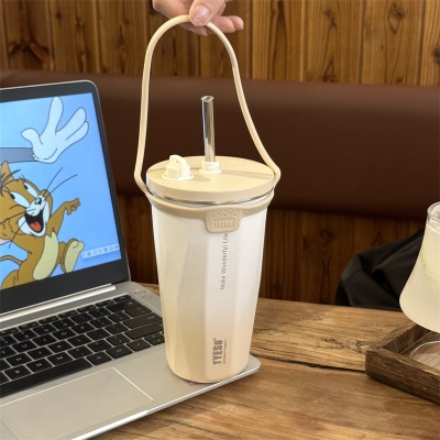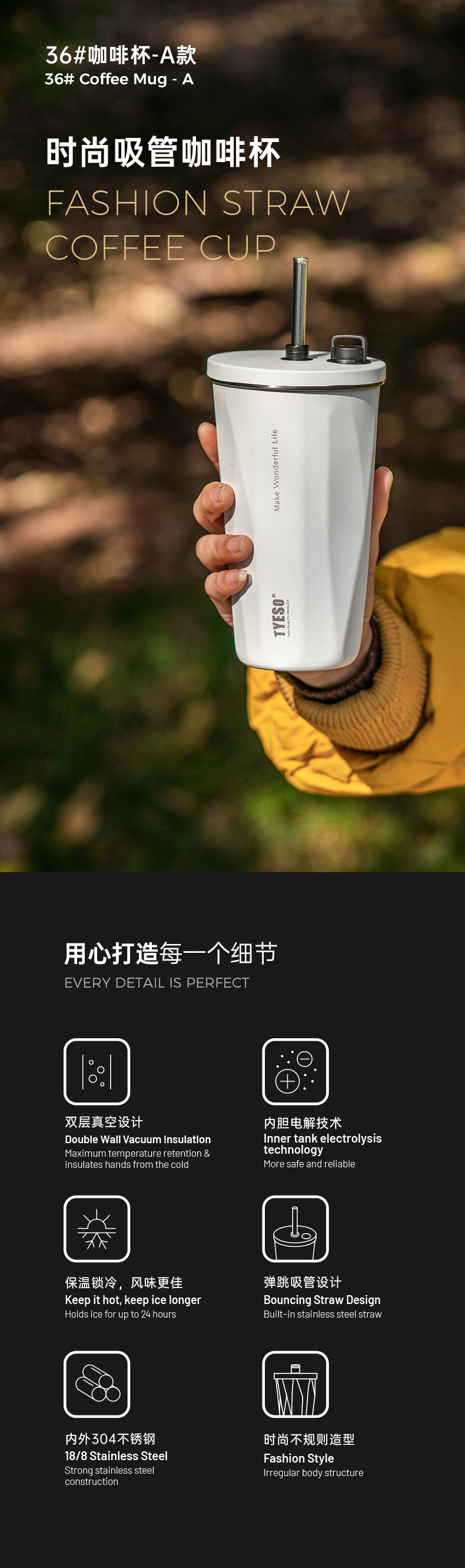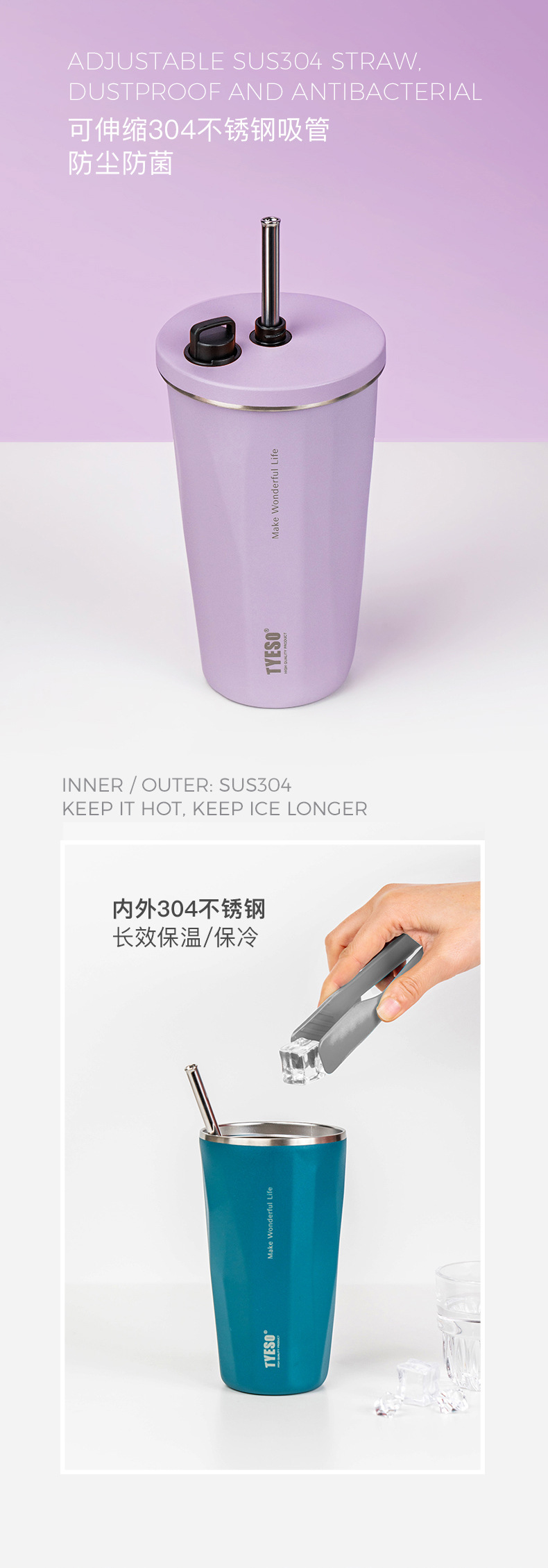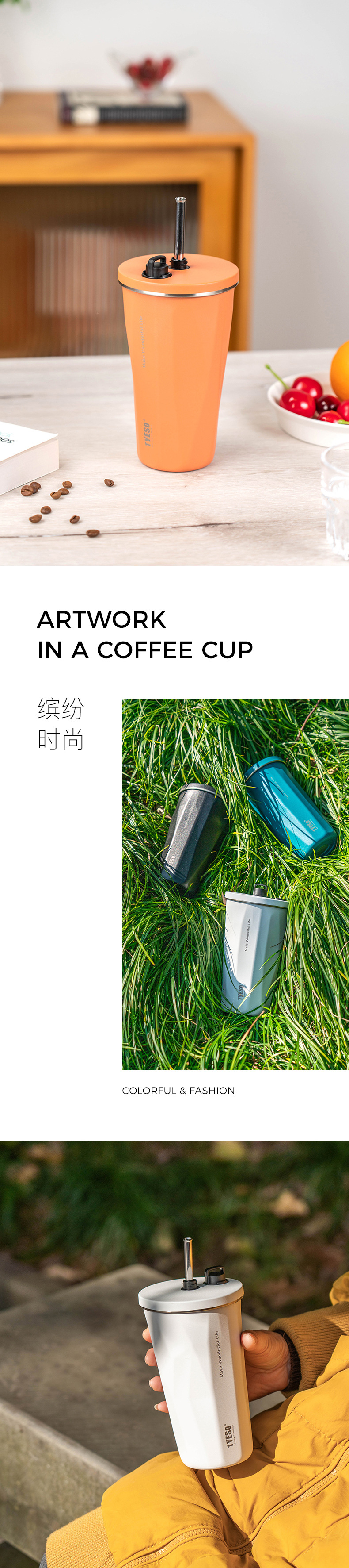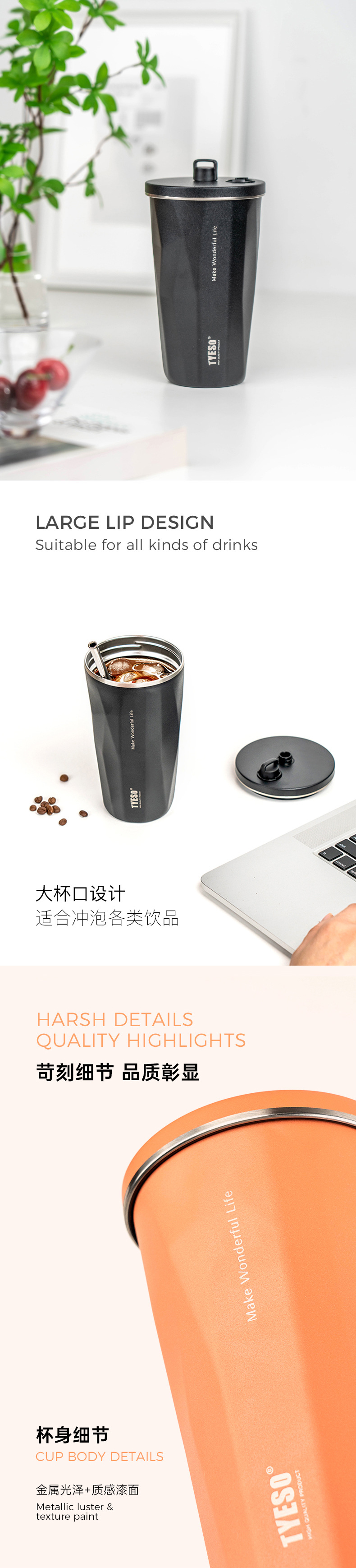 TYESO泰硕新款不锈钢咖啡杯冰霸保温车载吸管杯便携大容量水杯子