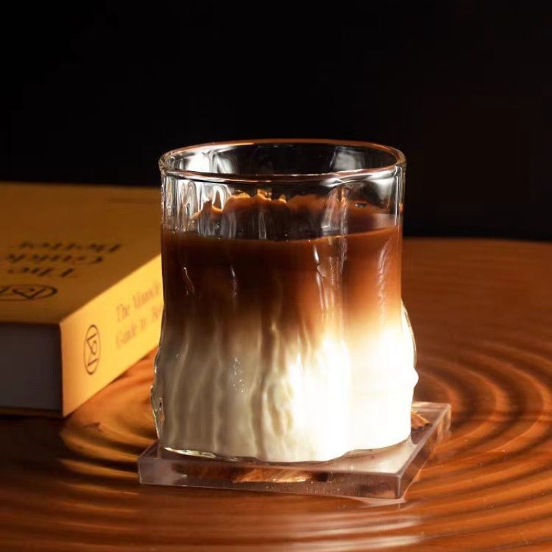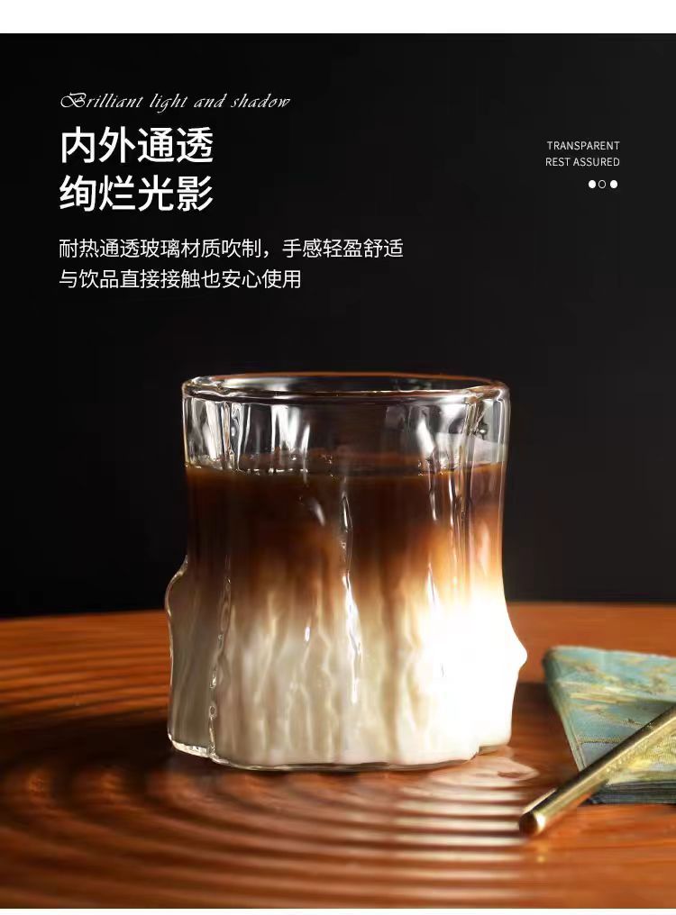 Dirty咖啡杯冰美式设计感小众透明玻璃杯高颜值树桩拿铁杯网红杯
