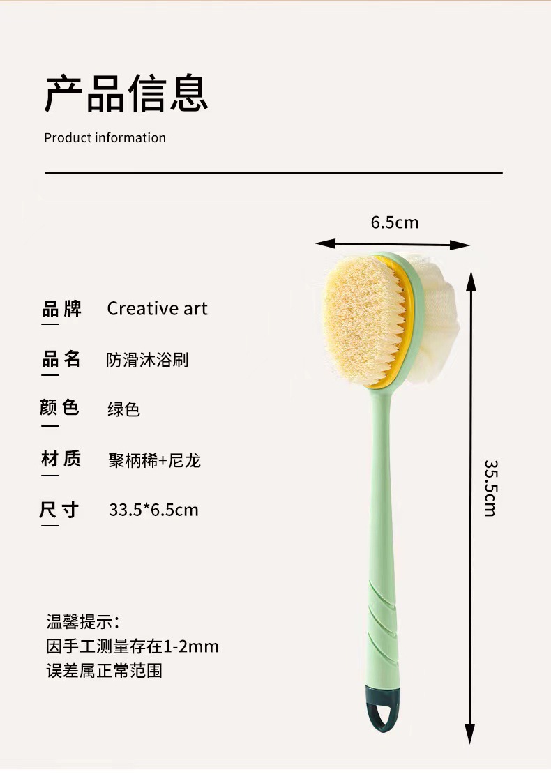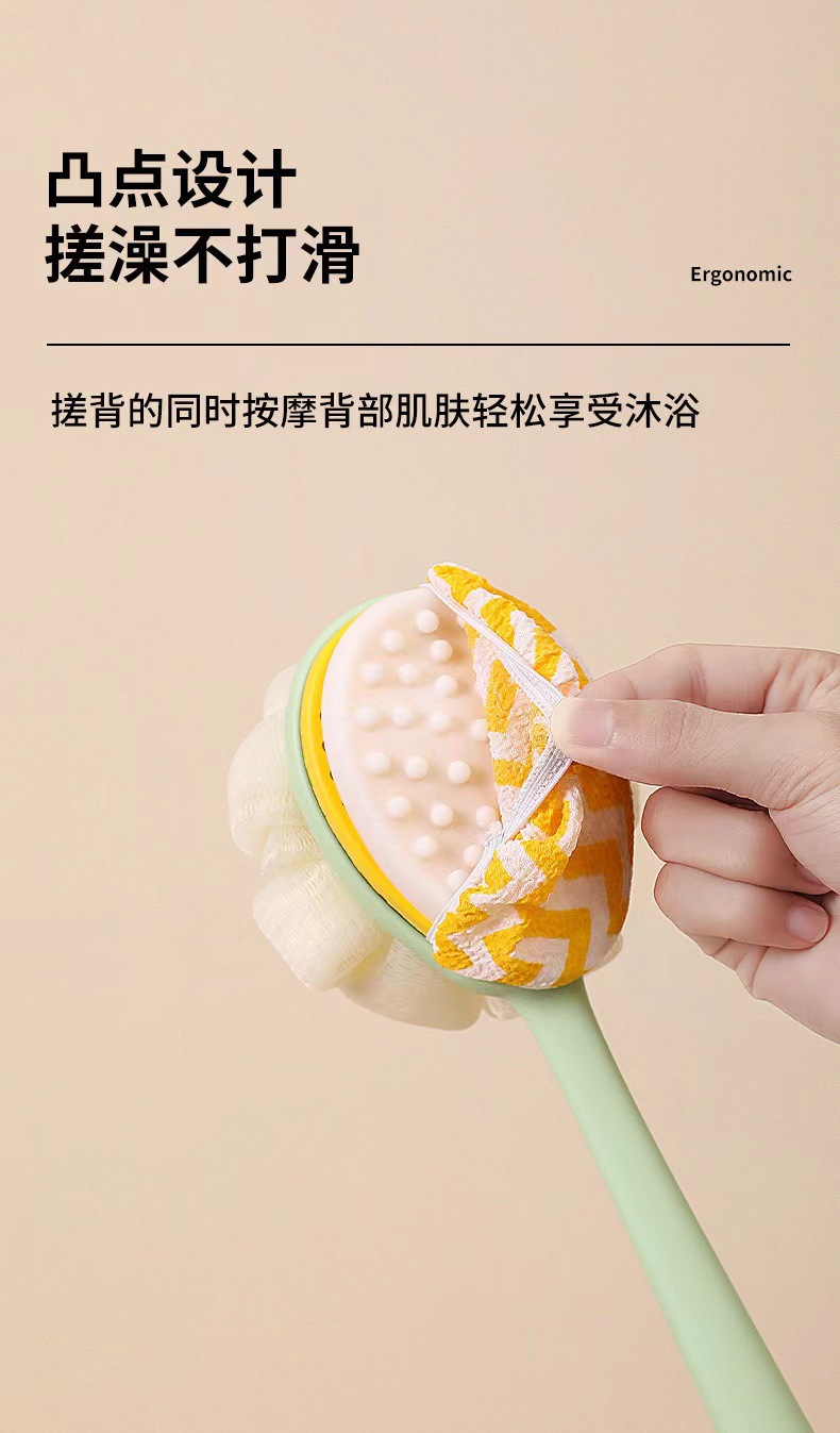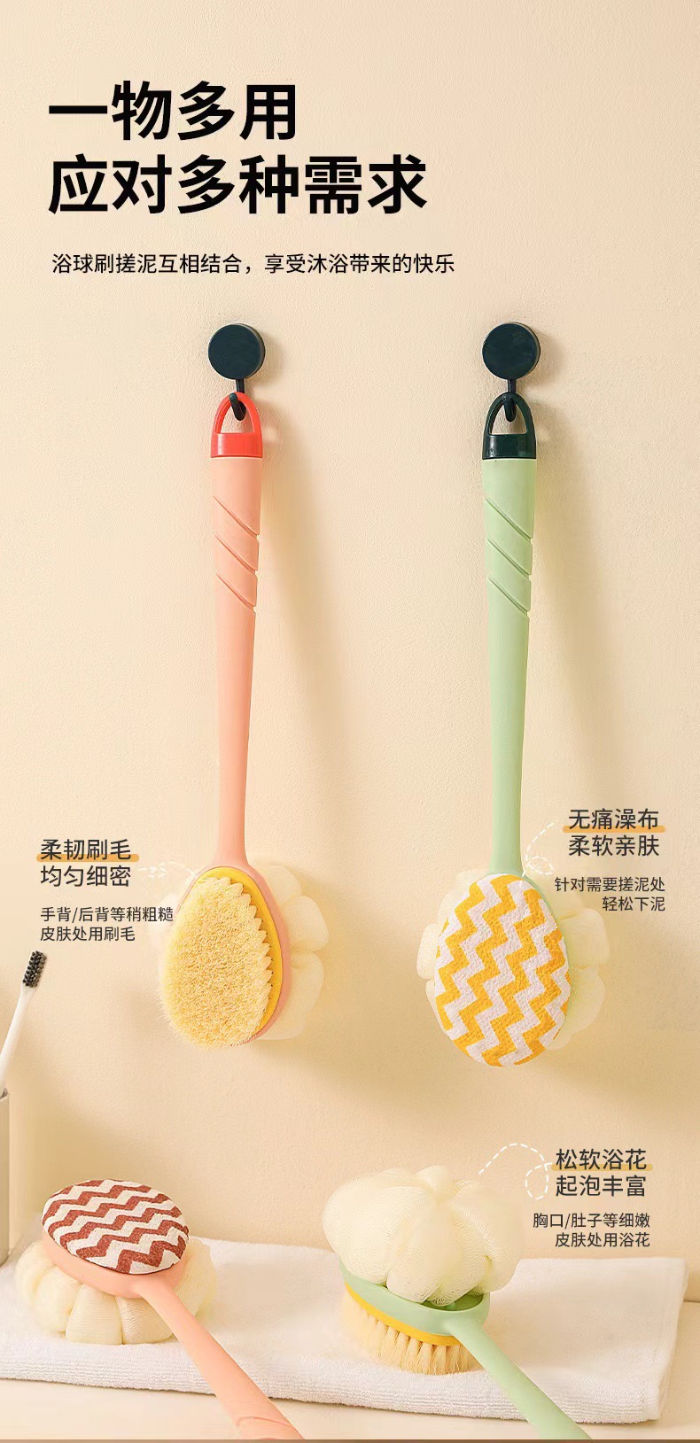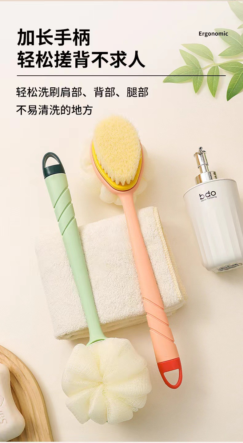 商品名稱:洗澡刷沐浴球搓背刷子家用软毛长柄双面擦背洗澡刷搓背不求人神器