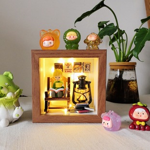 手办收纳展示盒木质相框中空7.5cmdiy手工创意小王子水果崽崽摆件