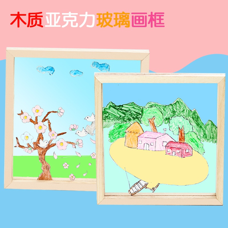 幼儿园儿童手工diy绘画实木亚克力玻璃相框创意涂鸦手绘美术画框