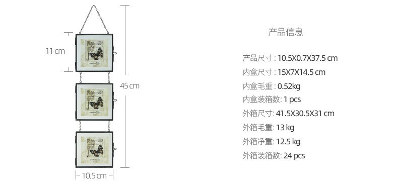 商品名稱:三联框相框黑色复古相框创意多联相片装饰相框墙挂玻璃相框欧式