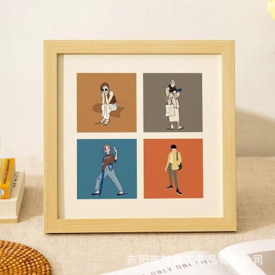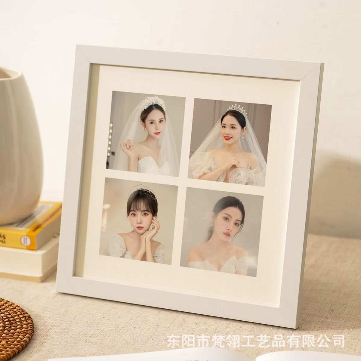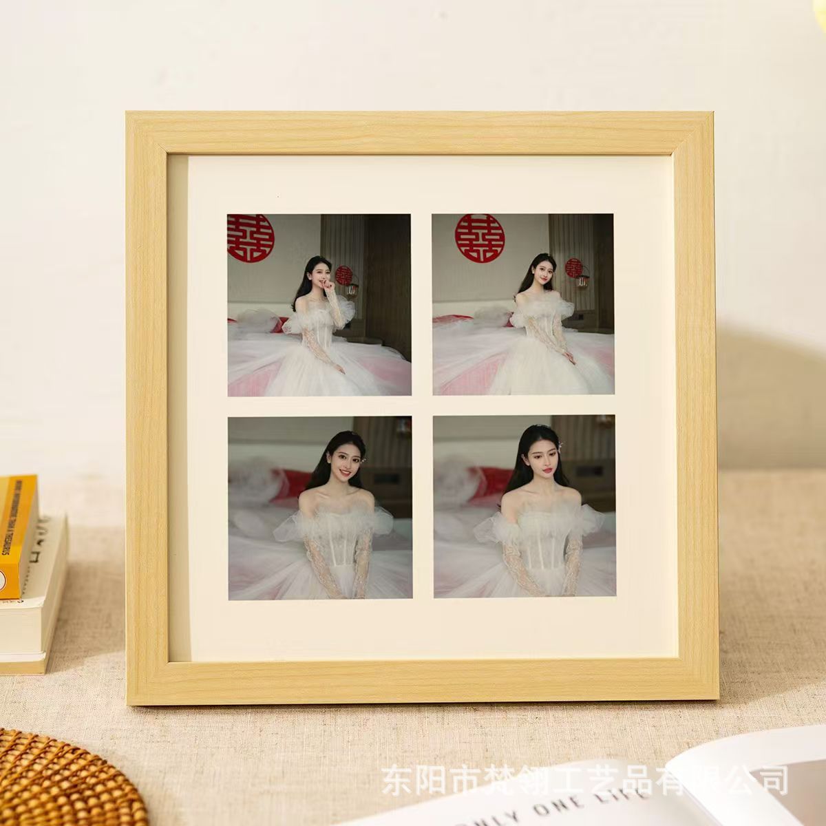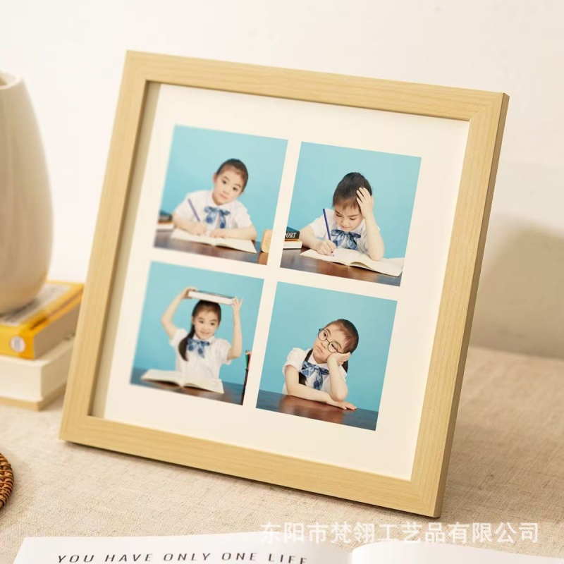 简约正方形四宫格照片相框批发手工diy摆件绘画装裱画框挂摆两用