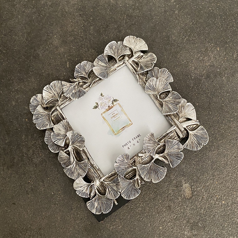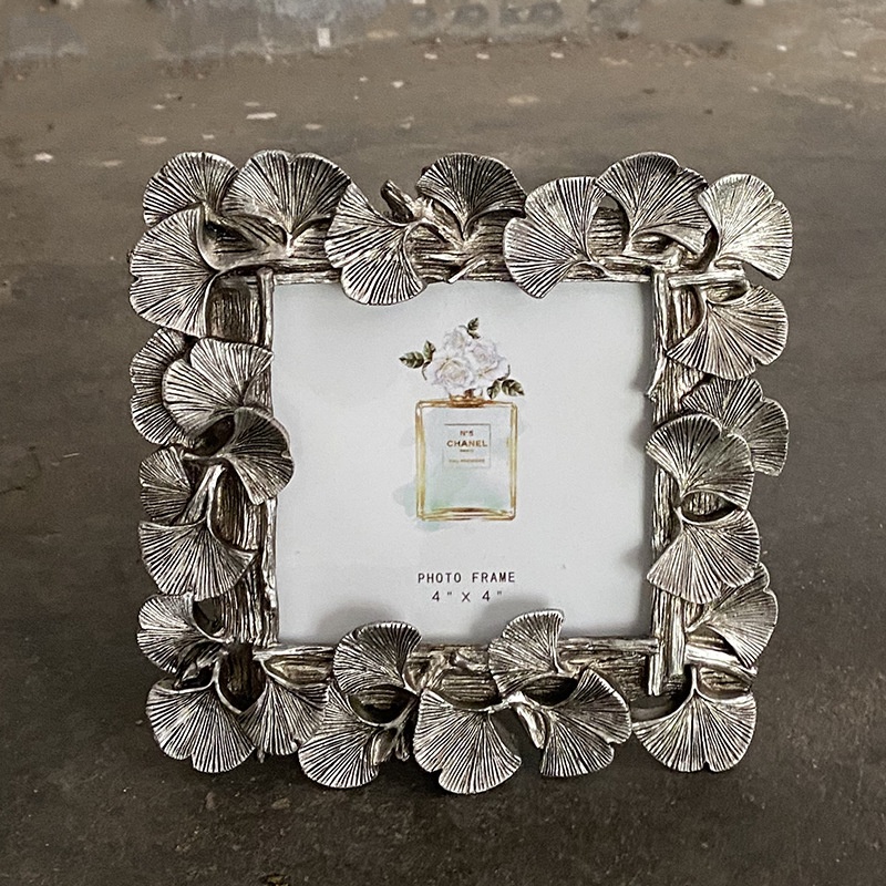 商品名稱:欧式金色银杏叶4寸银色树脂相框摆台创意卧室像框架装饰摆件摆台