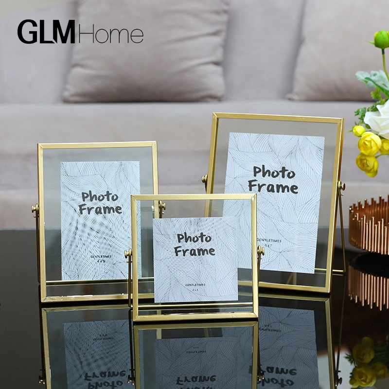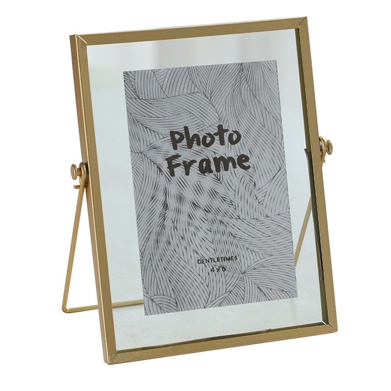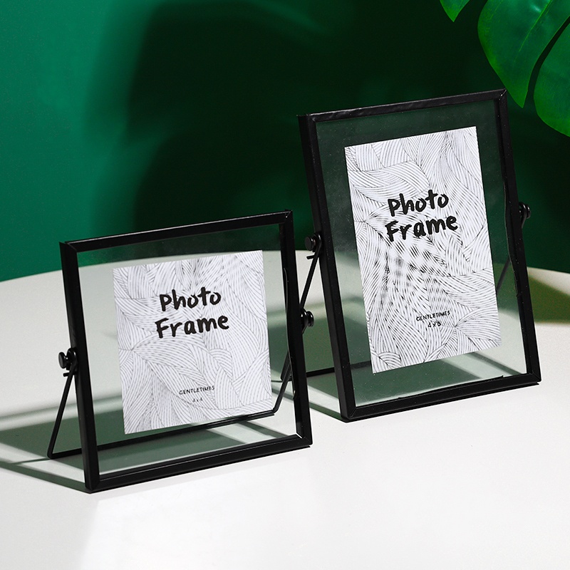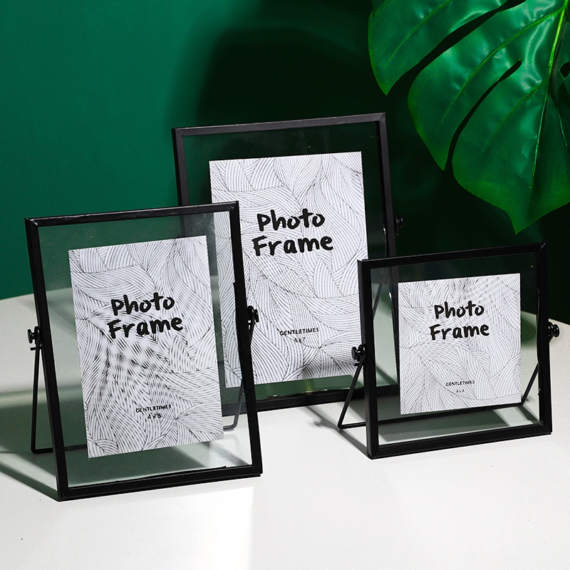 北欧轻奢金属相框摆台玻璃创意中空标本植物框照片框摆件6寸批发