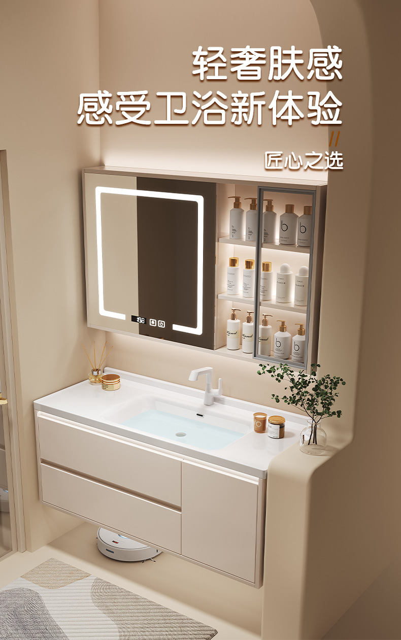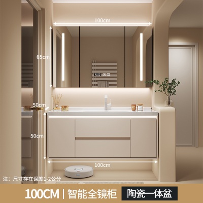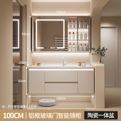 1.0米智能镜柜+陶瓷一体盆+龙头套装