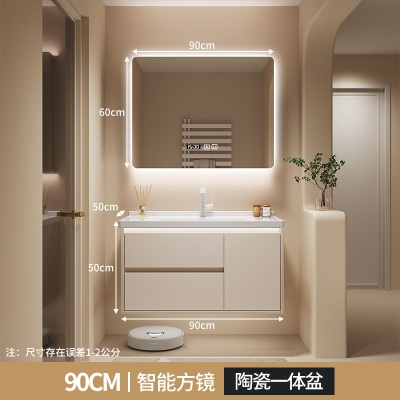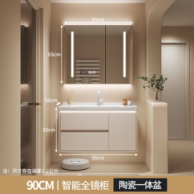 0.9米智能镜柜+陶瓷一体盆+龙头套装