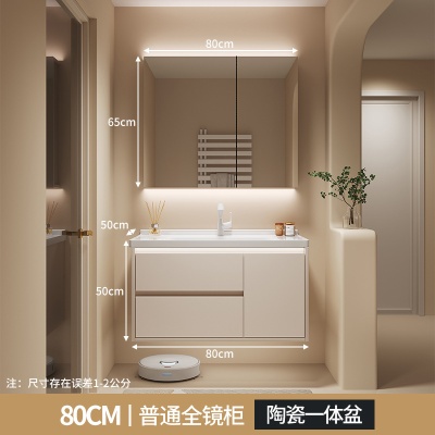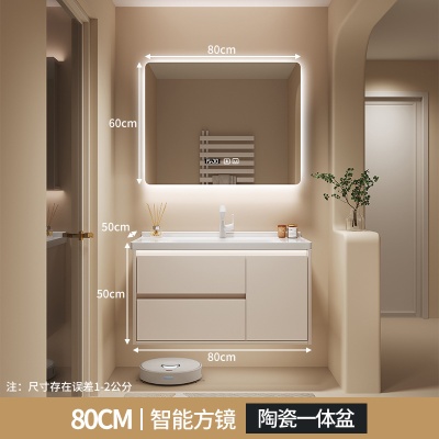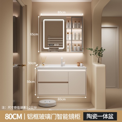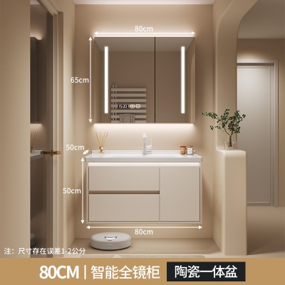 0.8米智能镜柜+陶瓷一体盆+龙头套装
