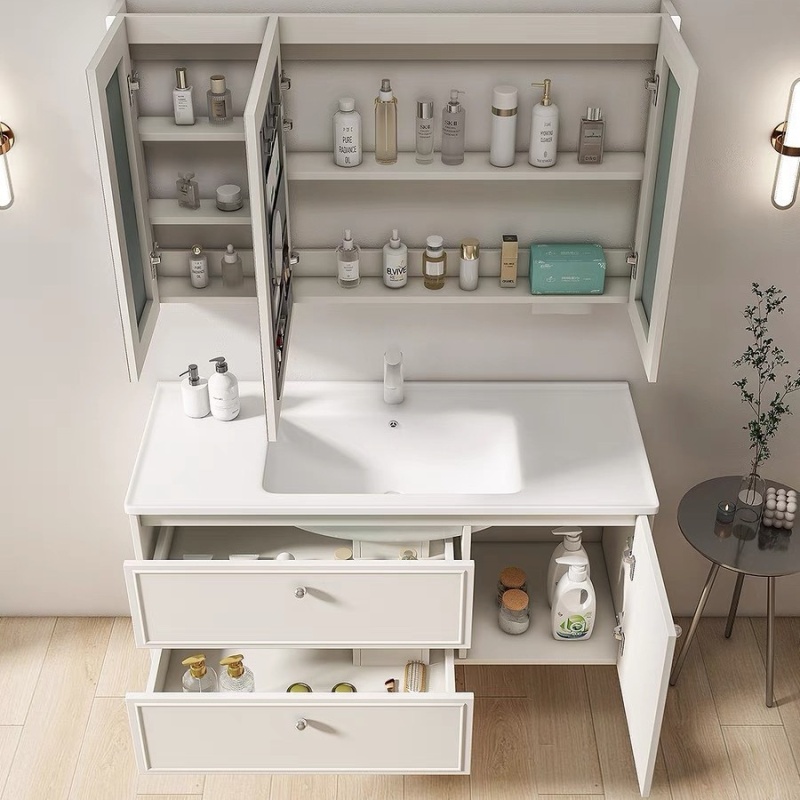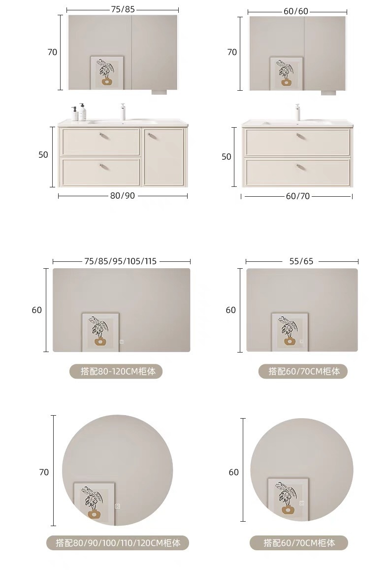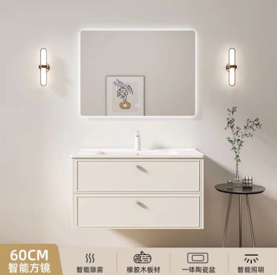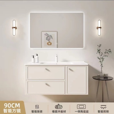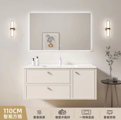 商品名稱:奶油风浴室柜陶瓷一体盆极简风洗手盆洗脸盆柜组合卫生间洗漱台