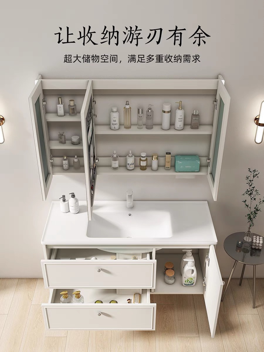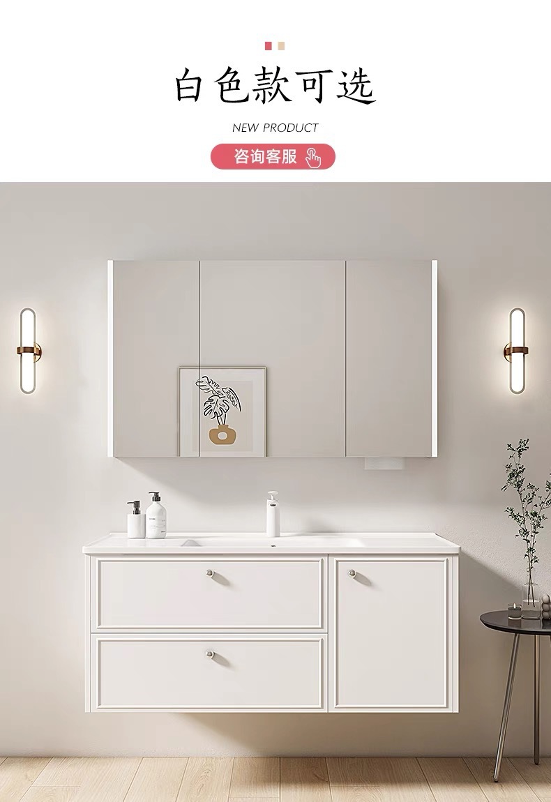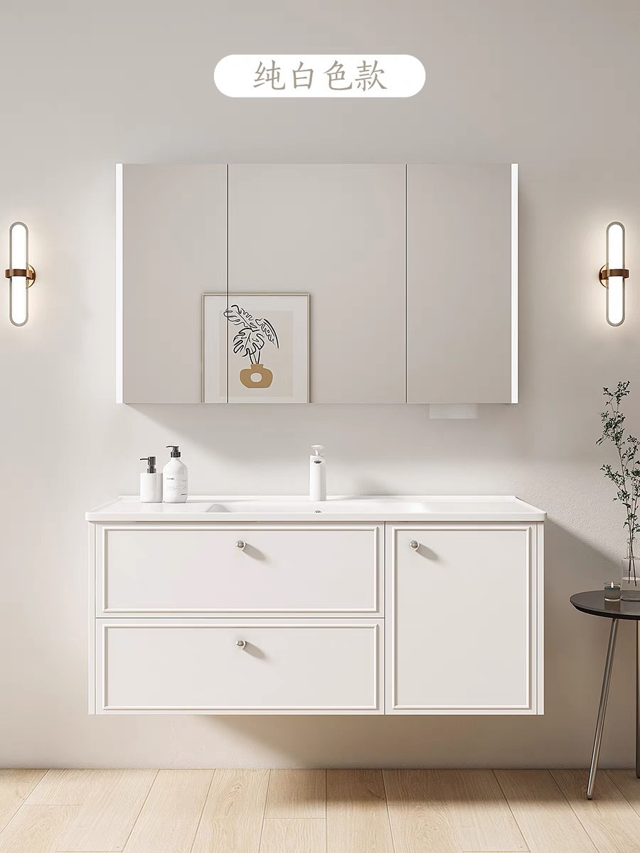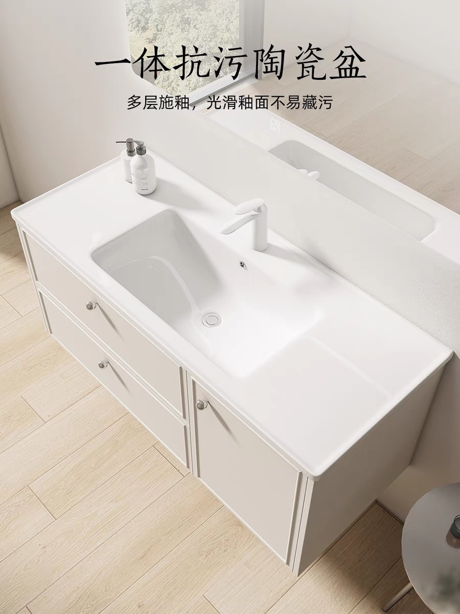 奶油风浴室柜陶瓷一体盆极简风洗手盆洗脸盆柜组合卫生间洗漱台