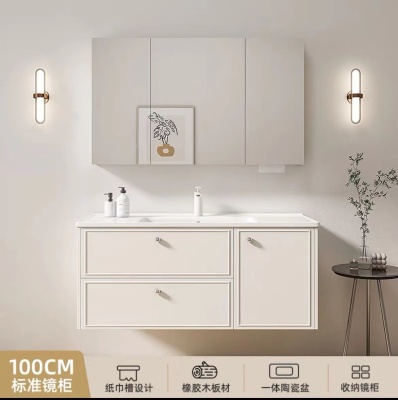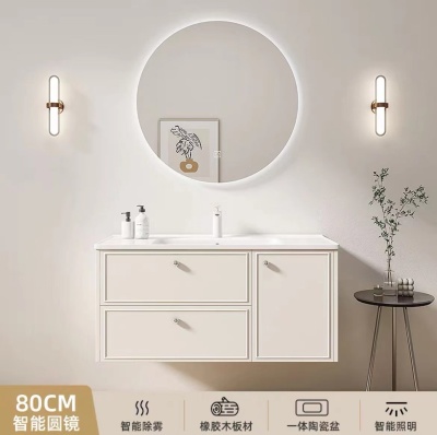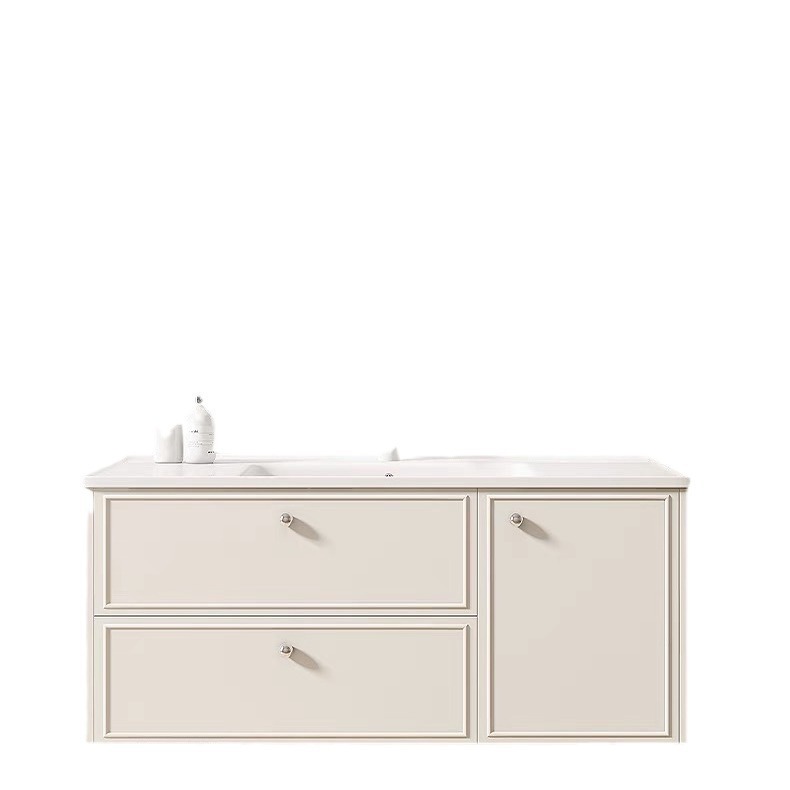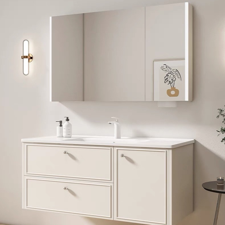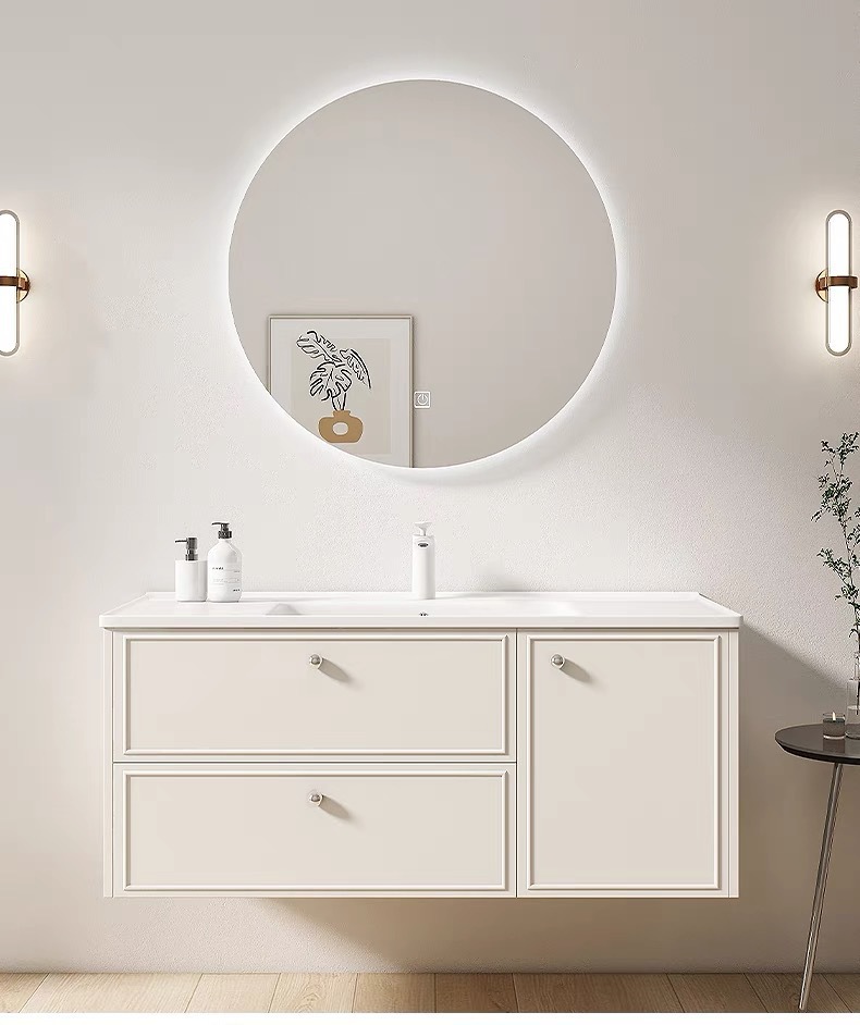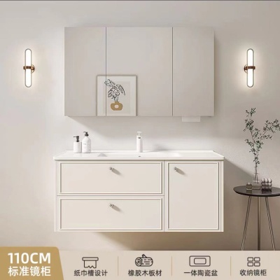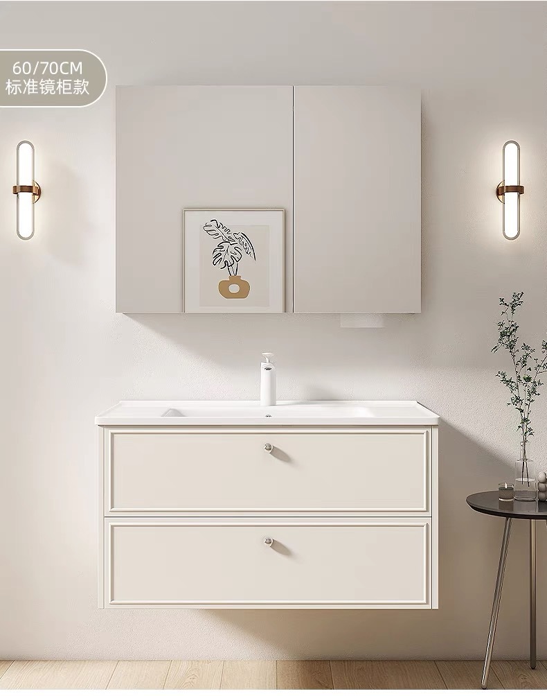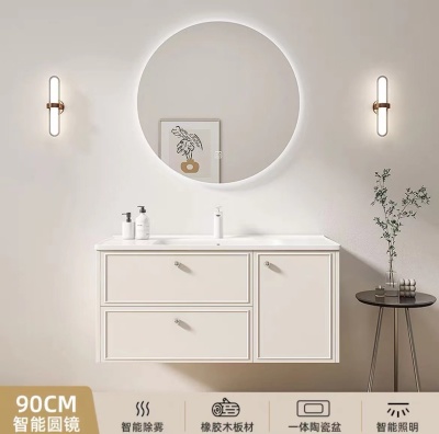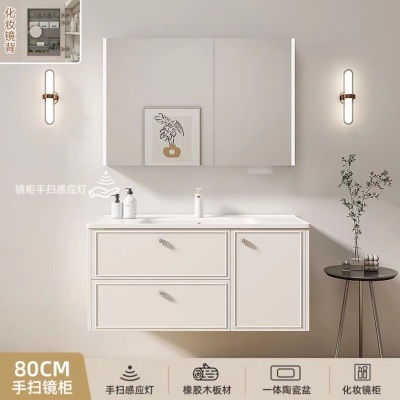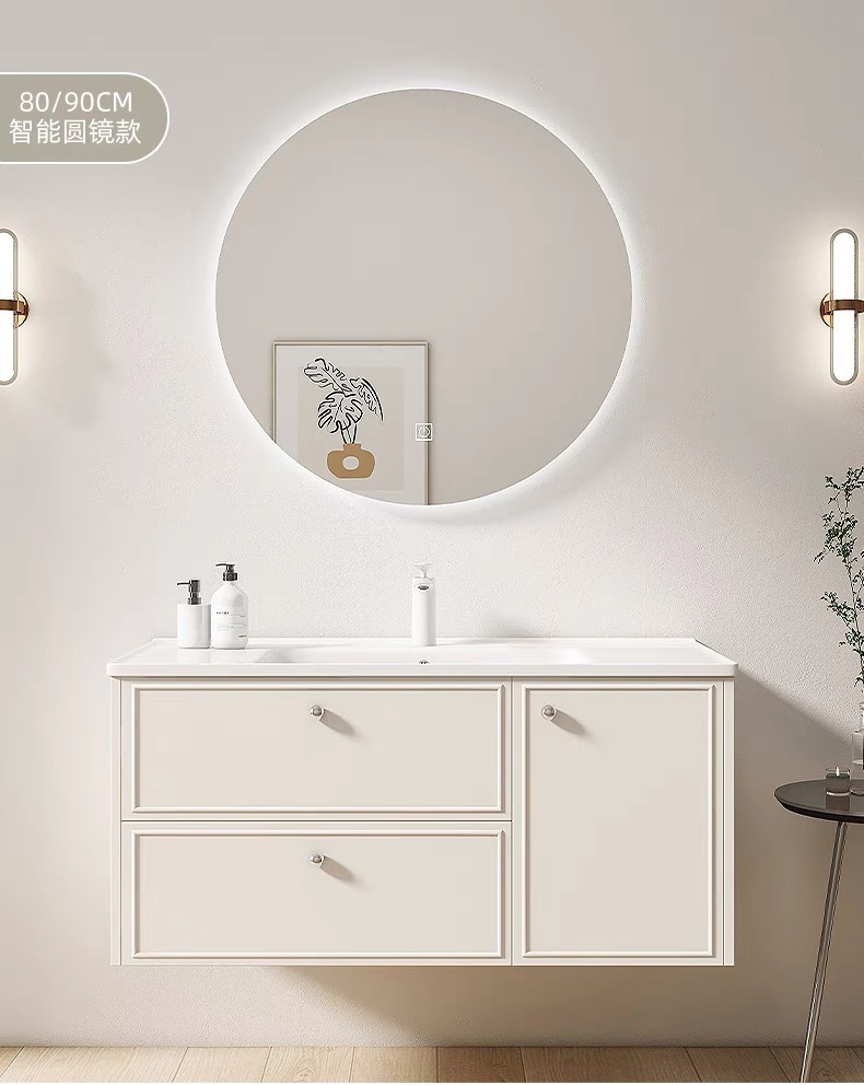 奶油风浴室柜陶瓷一体盆极简风洗手盆洗脸盆柜组合卫生间洗漱台