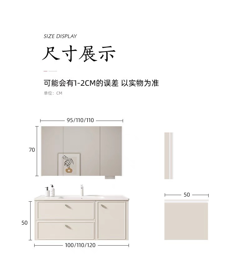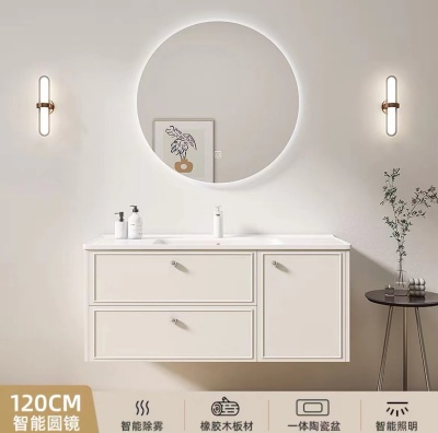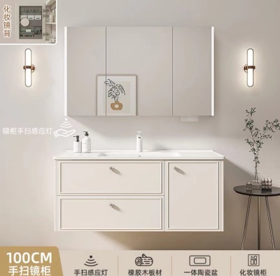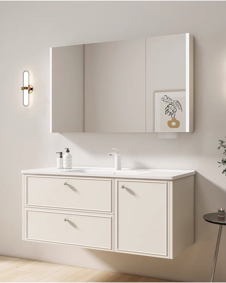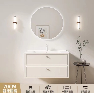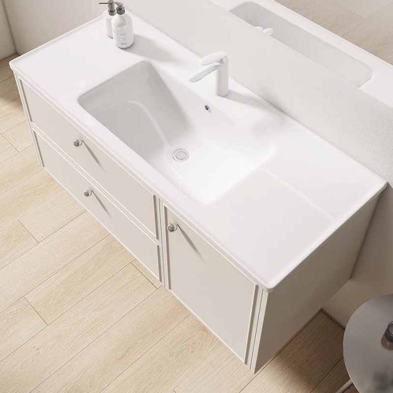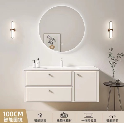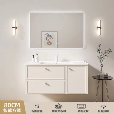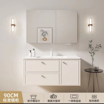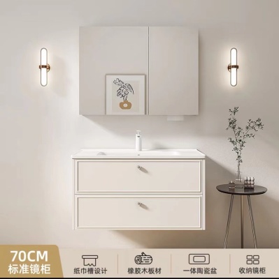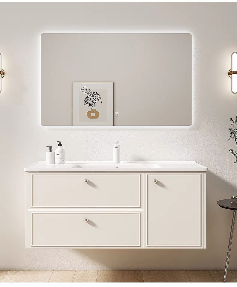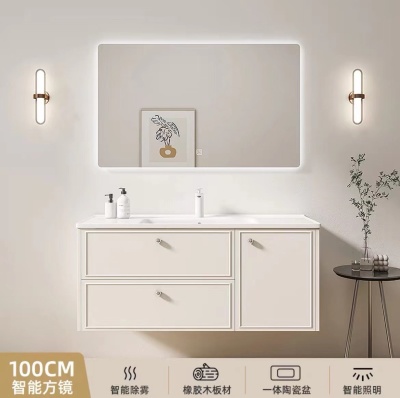 奶油风浴室柜陶瓷一体盆极简风洗手盆洗脸盆柜组合卫生间洗漱台